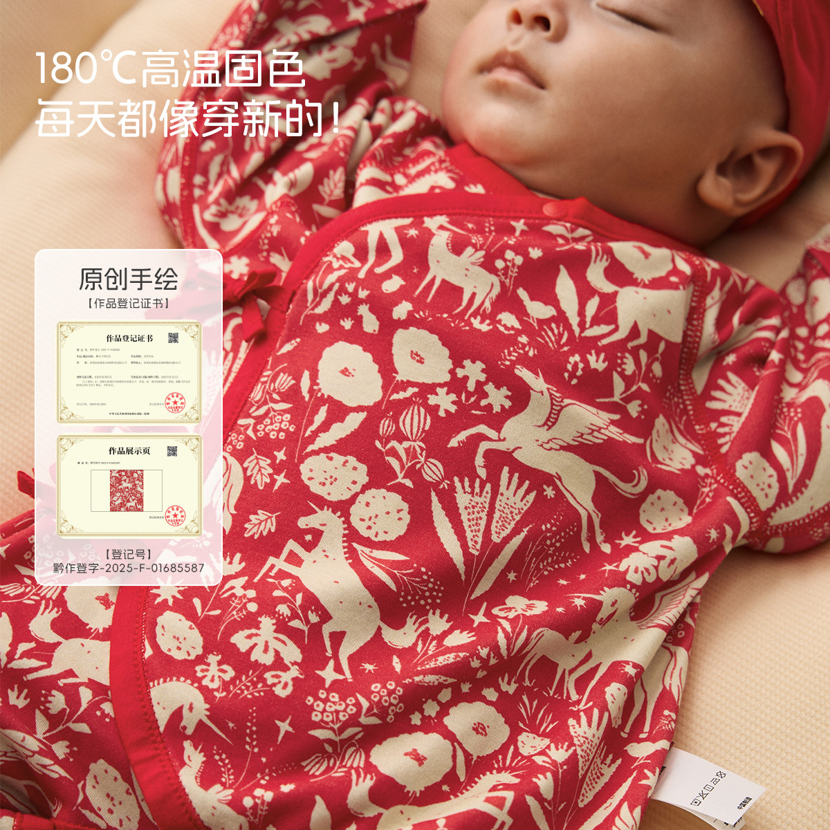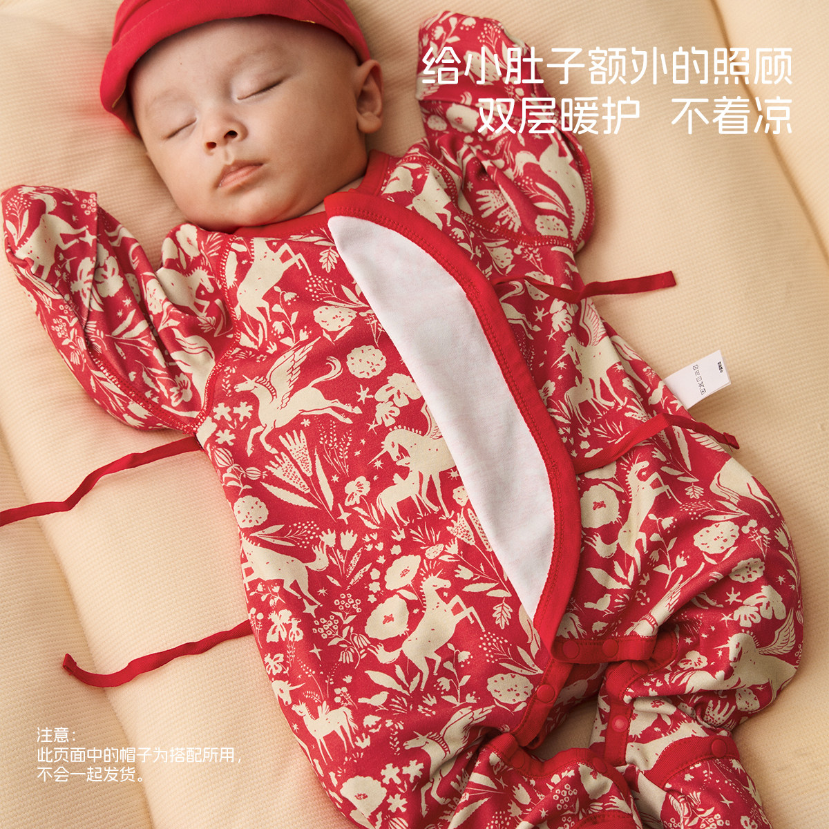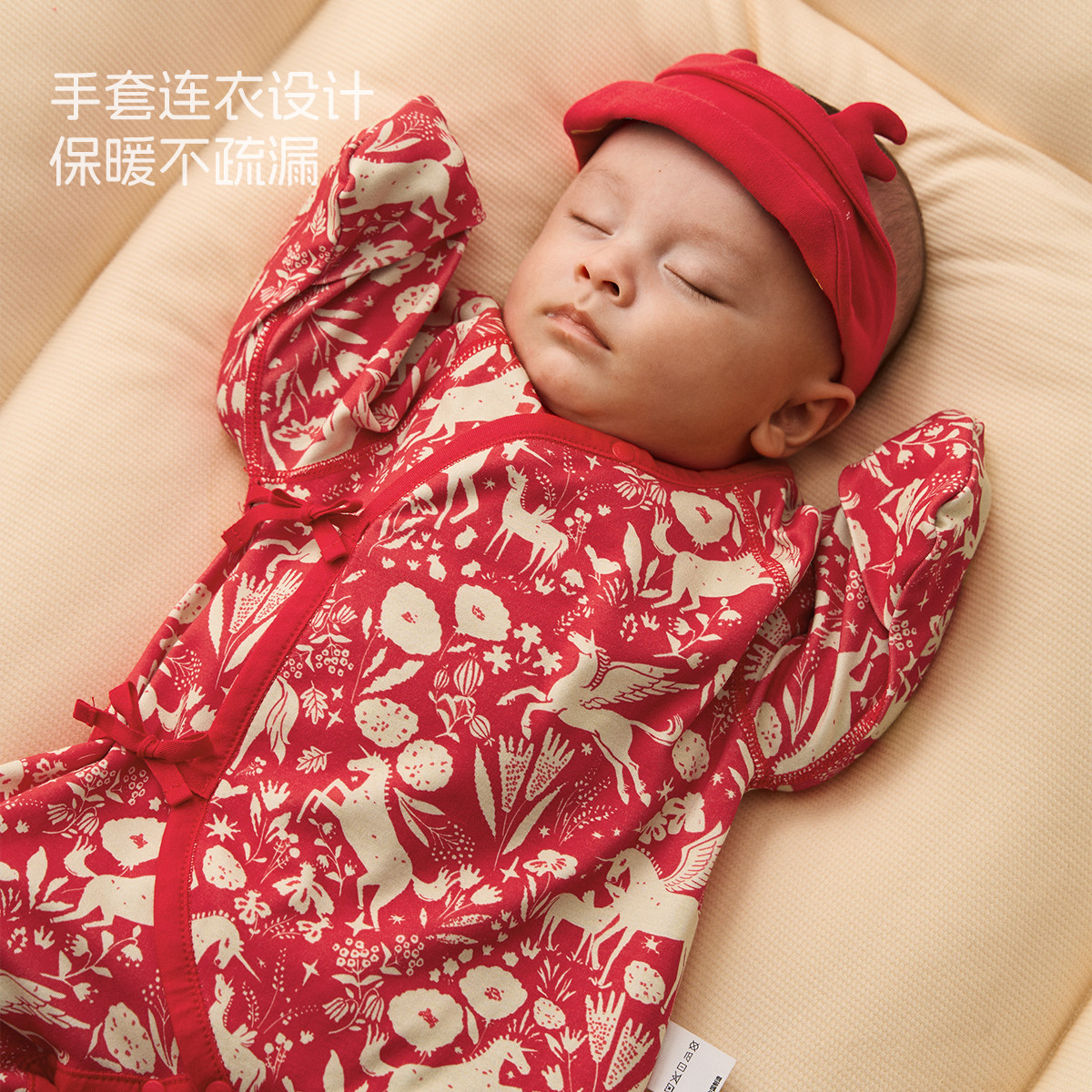 [梅尔卡特]aqpa新生儿婴儿连体衣春秋保暖纯棉新年红满月宝宝衣服