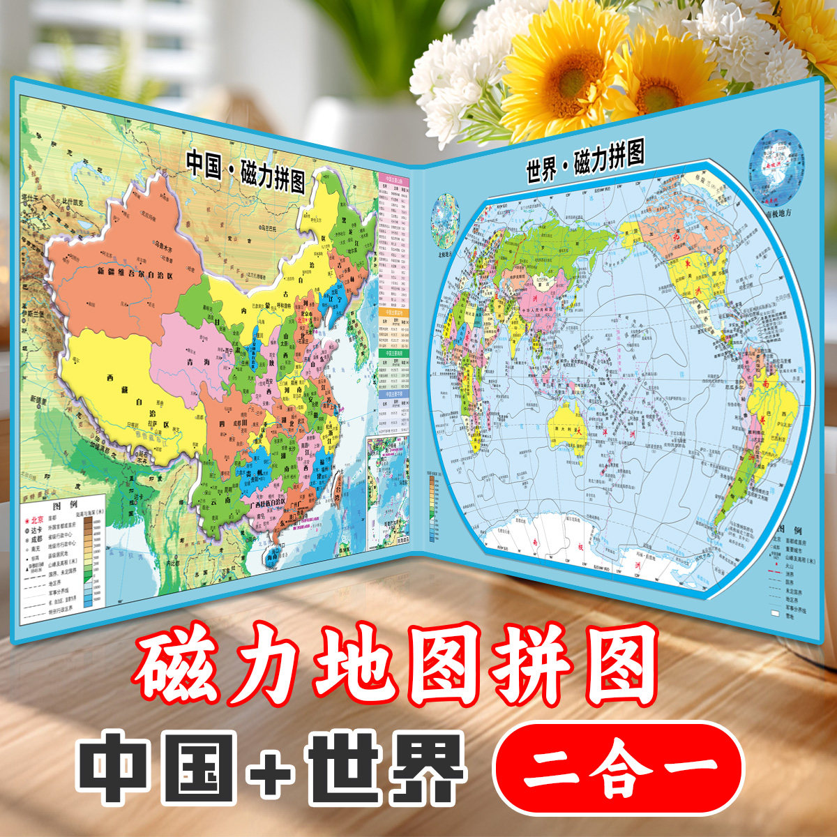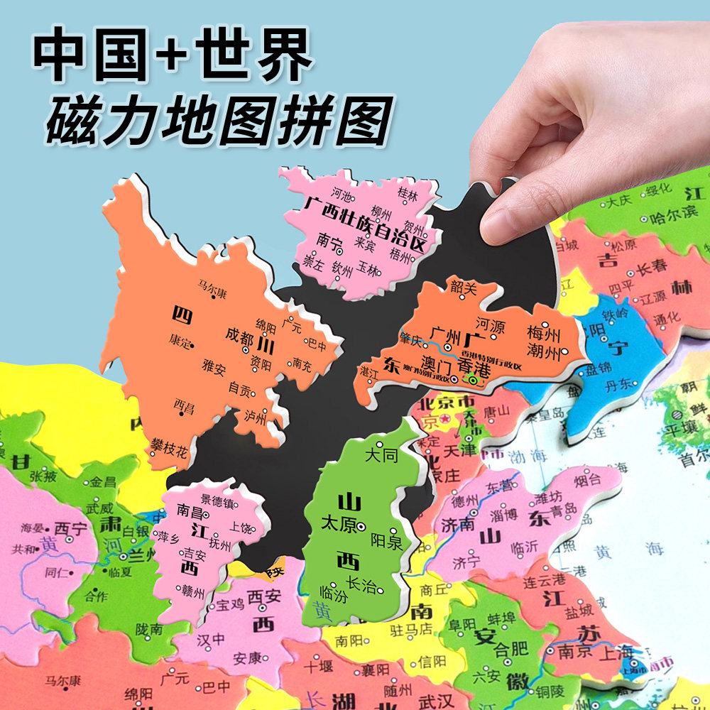 精装中国+世界地图磁力拼图儿童益智6岁以上3d立体小学初中生专用