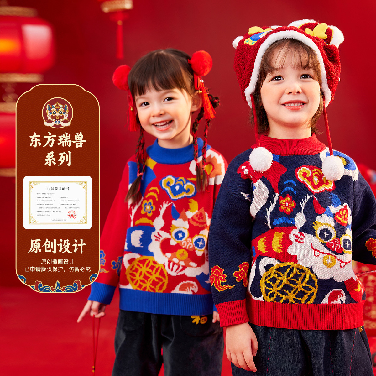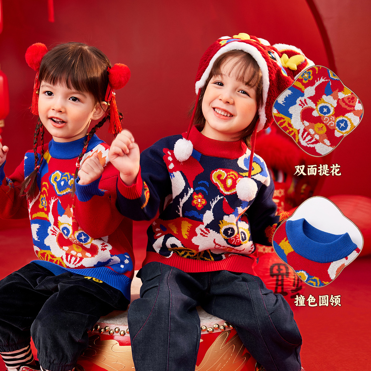 嘟嘟家儿童拜年服冬季男童中国风毛衣女童红色喜庆过年服宝宝唐装