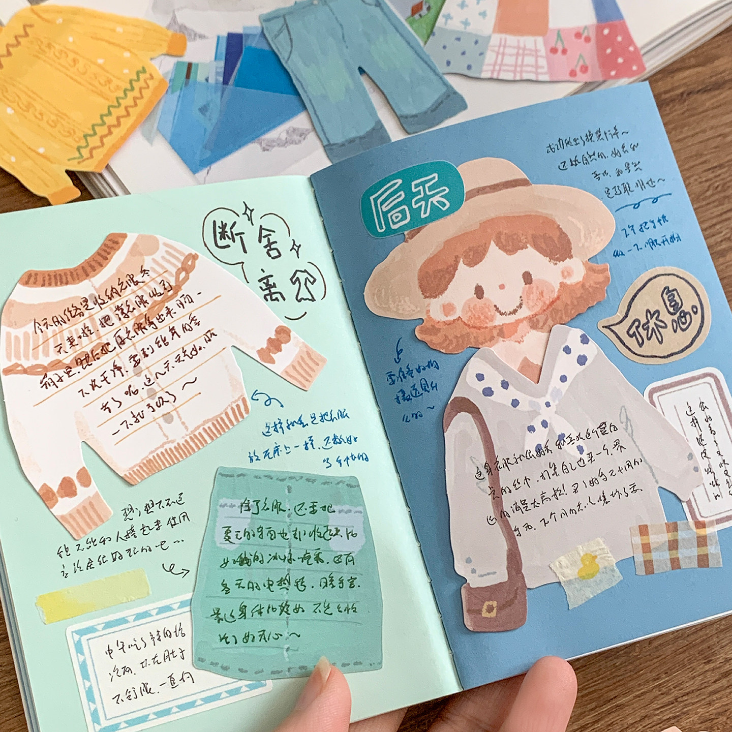 卓大王【油画棒系列便签】搭配衣服抱着东西机关手帐异形内页装饰