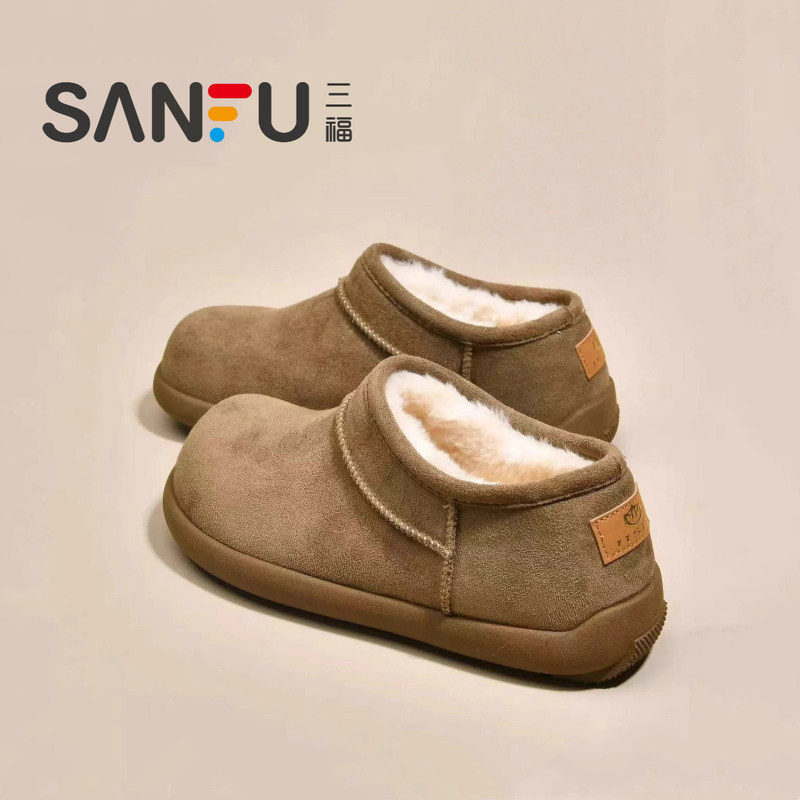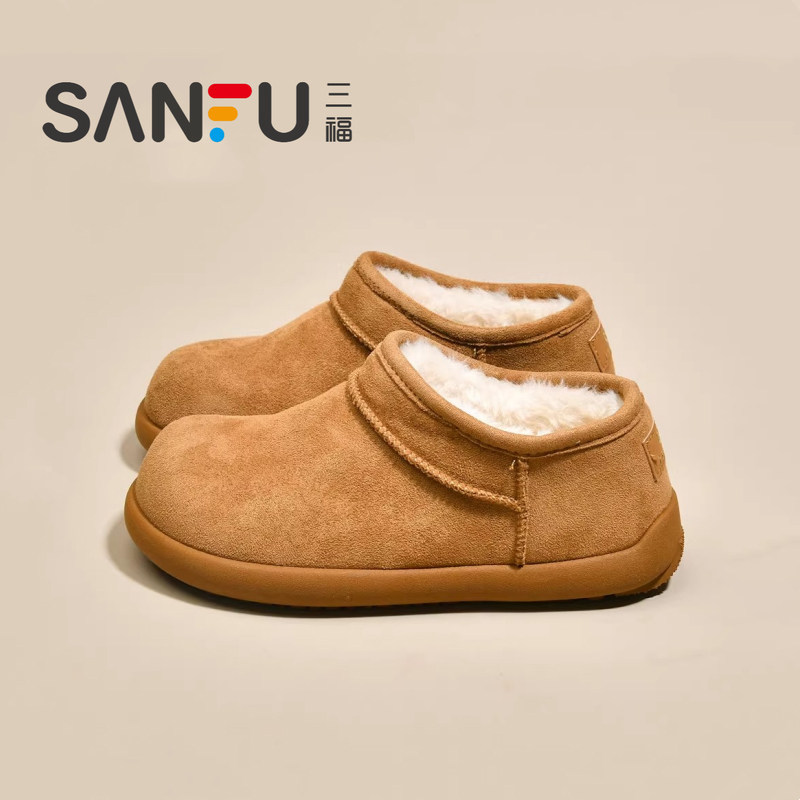 三福真皮小土豆勃肯鞋雪地靴女2025冬季新款厚底加绒加厚保暖棉鞋