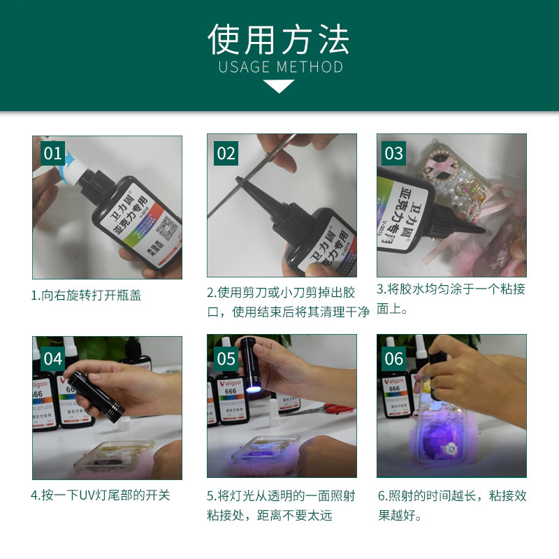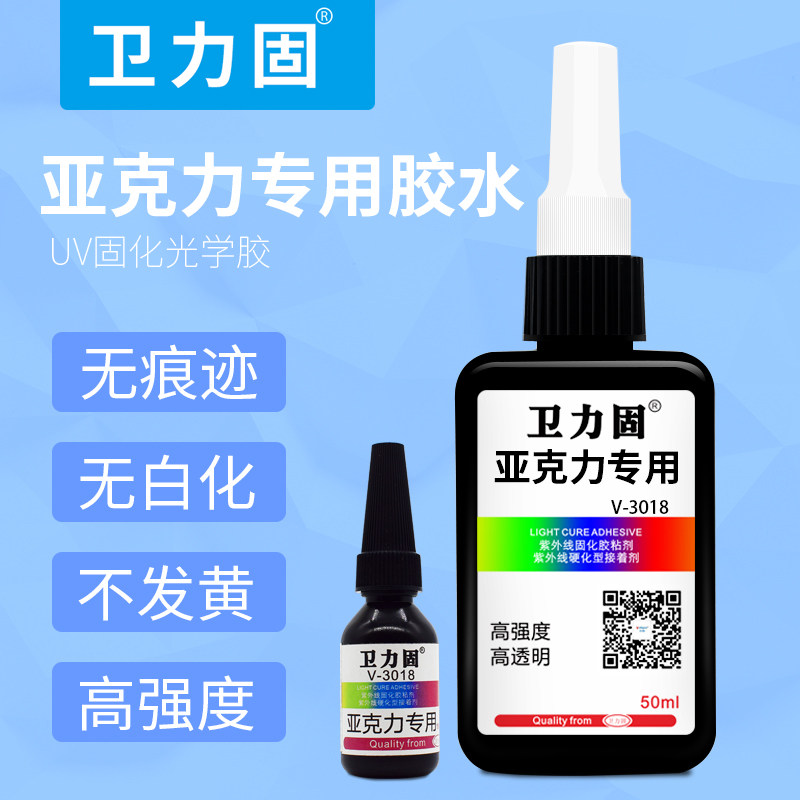 卫力固亚克力专用胶水透明无痕UV无影胶滴胶胶水专用强力胶无气泡紫外线固化胶水有机玻璃粘亚克力板鱼缸胶