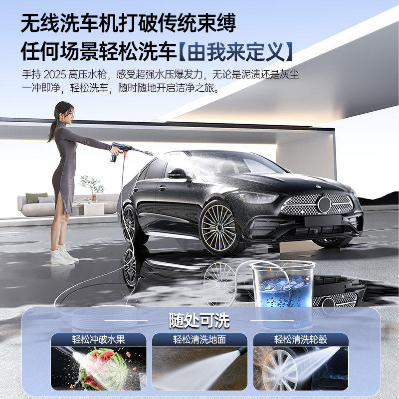 洗车高压水枪家用无线洗车机增压锂电池高强压力洗地机清洗机神器