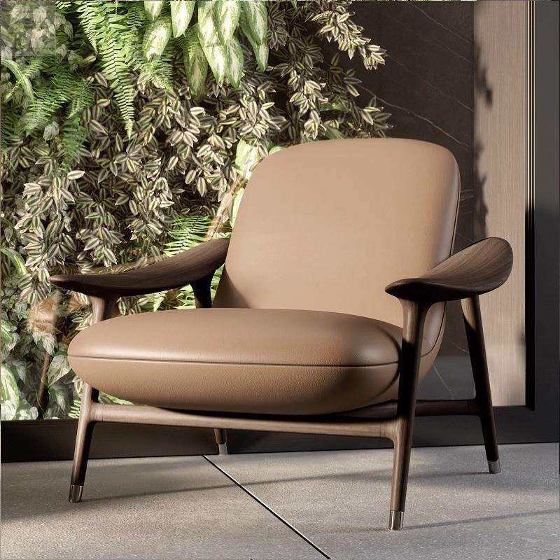 北欧设计师实木皮艺休闲椅客厅阳台卧室懒人躺椅轻奢网红沙发单椅