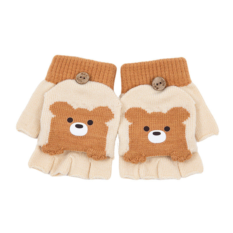 儿童手套秋冬天半指保暖宝宝女童可爱婴幼儿加厚小孩0-2岁小蘑菇