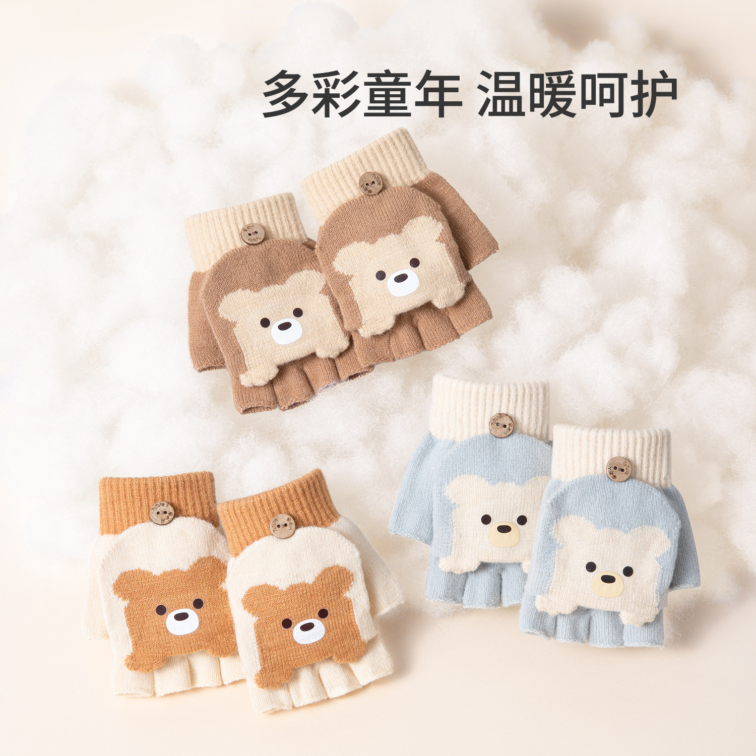 宝宝手套冬天一岁儿童五指翻盖2岁男女童秋冬季针织保暖半指写字