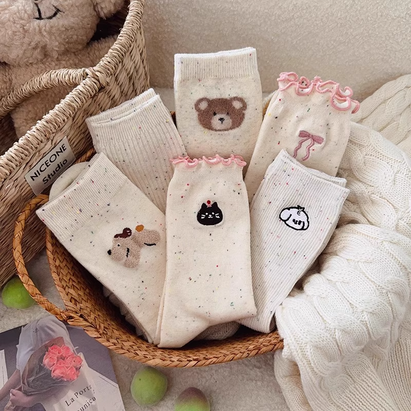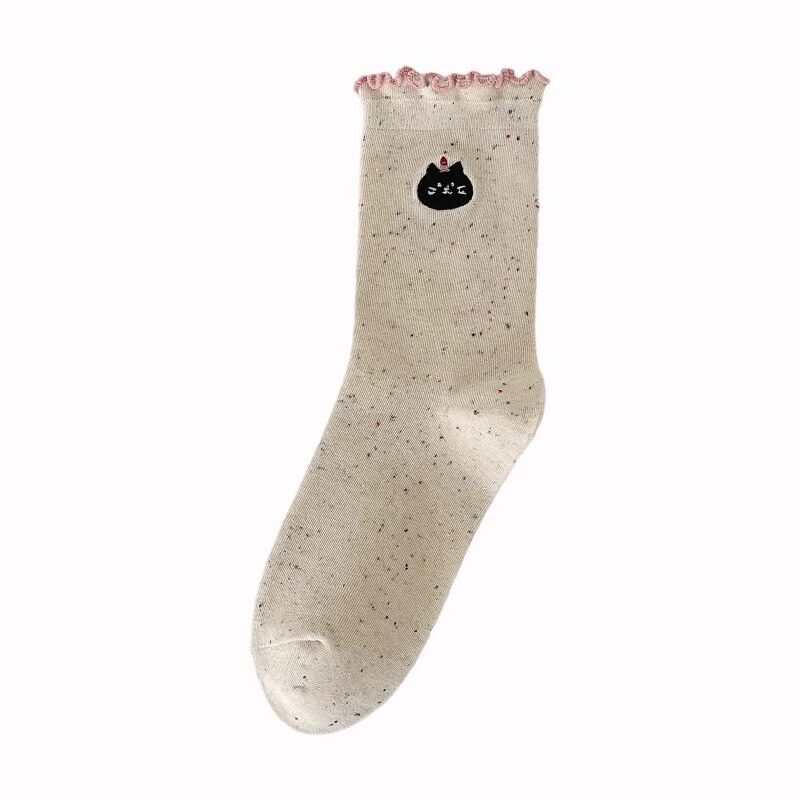 可爱卡通袜子女春秋季防臭中筒袜秋冬木耳花边长袜女士吸汗透气袜
