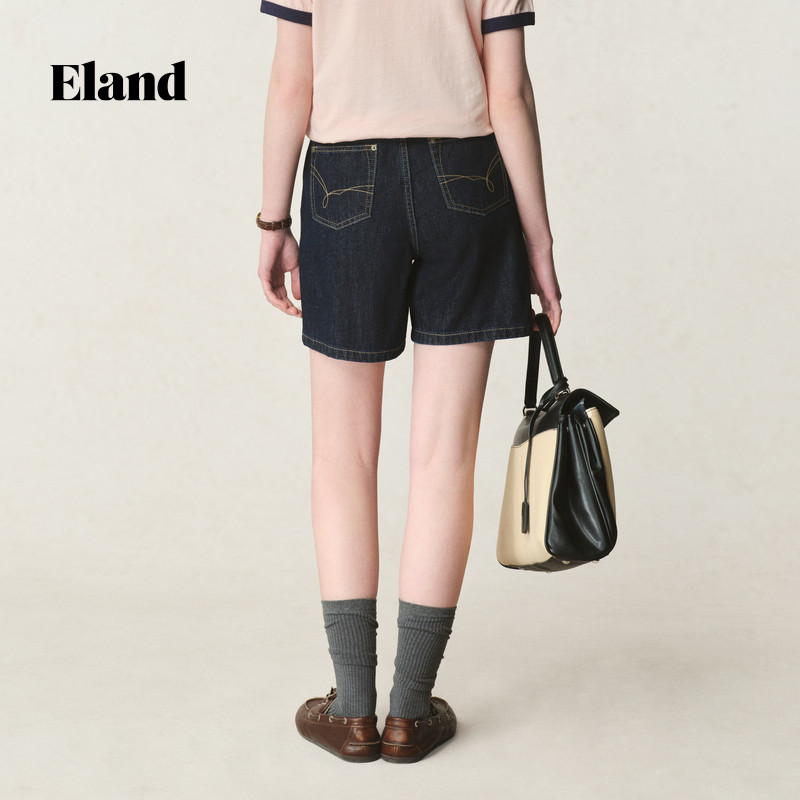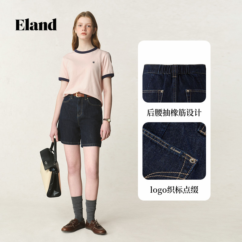 【100%棉】Eland衣恋牛仔裤女学院风微弹阔腿短裤2025夏季新款