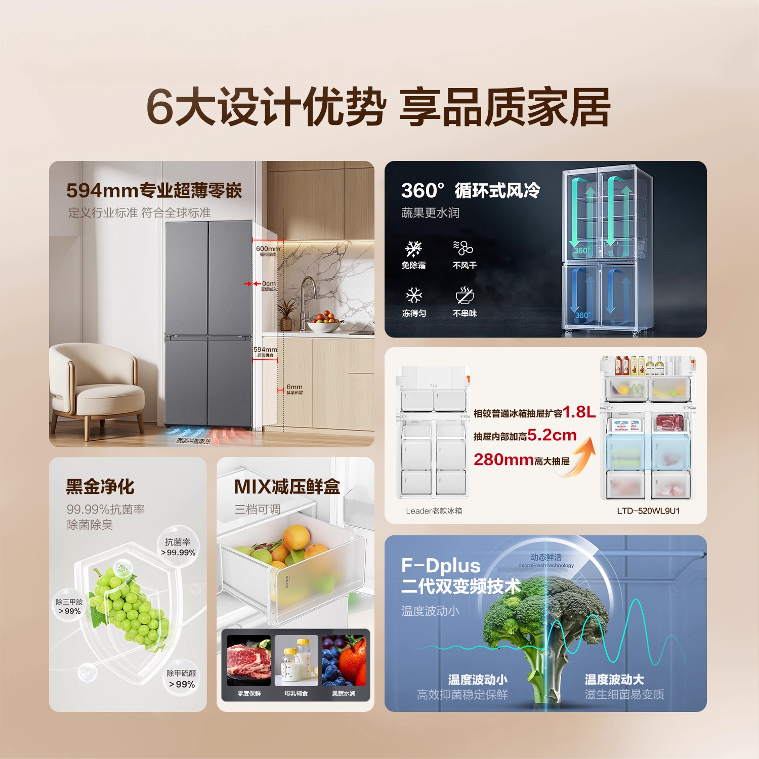换新补贴超薄零嵌海尔统帅悦己懒人520十字对开四门大容量电冰箱