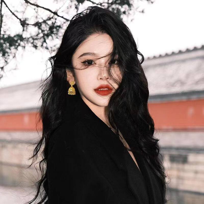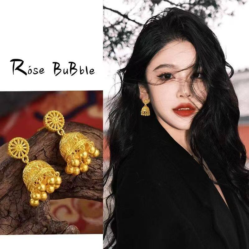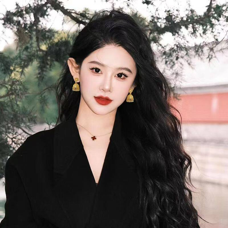 国潮金色水母流苏耳环方圆脸显脸小轻奢高级感波西米亚耳饰耳钉