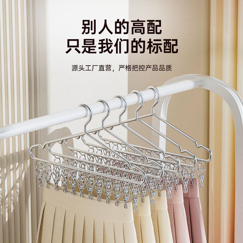 不锈钢衣架加粗加大家用挂衣服晾衣架子阳台宿舍晒衣撑子夹子