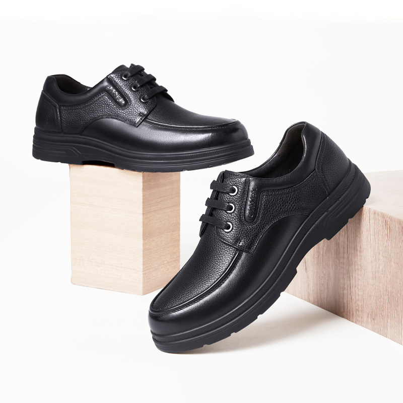 老人头皮鞋男真皮冬季中老年爸爸鞋大码男鞋加绒厚底商务休闲皮鞋