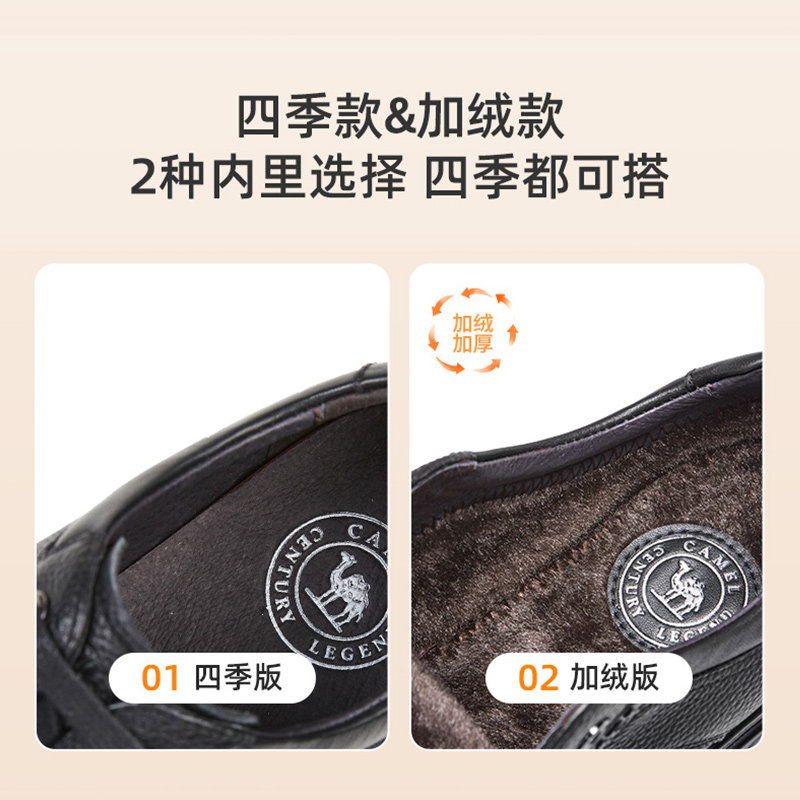 骆驼男鞋2025冬季真皮舒适商务加绒保暖棉鞋软底耐磨中年休闲皮鞋