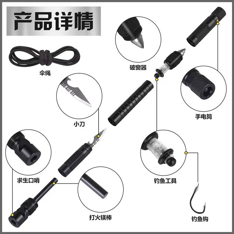 户外多功能小电筒带钓鱼工具生火口哨便携式小电筒