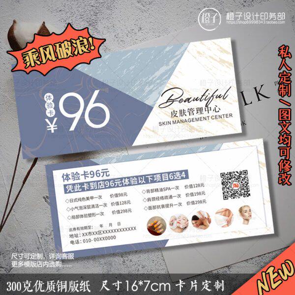 美甲轻奢宣传单网红卡美容院美代金券定制优惠券开业体验卡日式睫