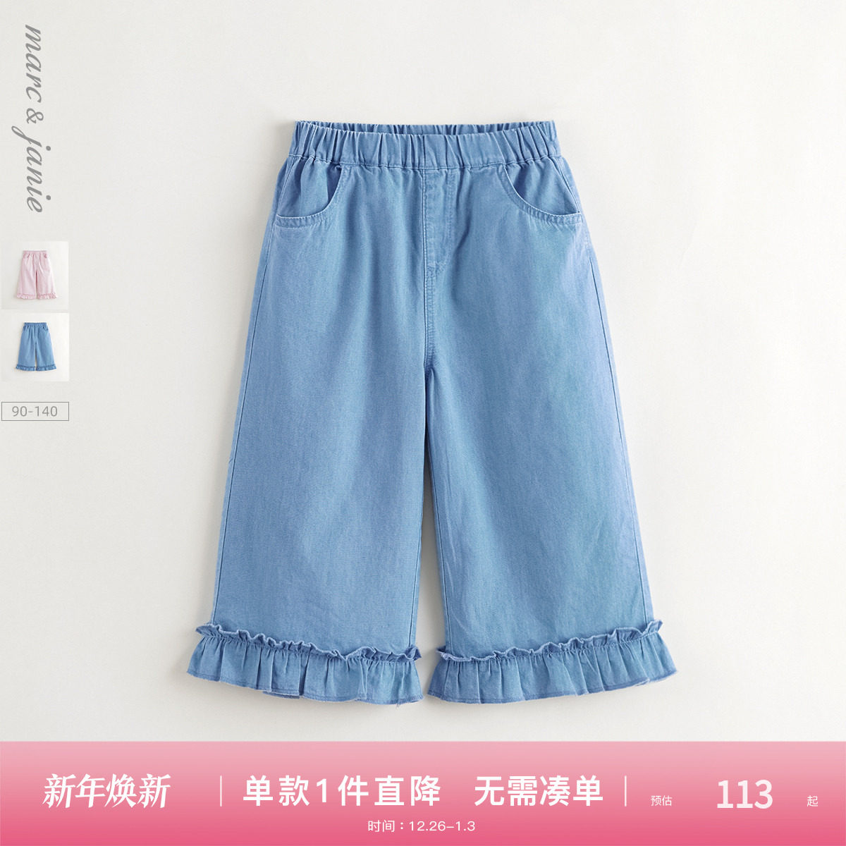 马克珍妮女童甜美花边牛仔阔腿裤 宝宝裤子2025年春夏新款550857
