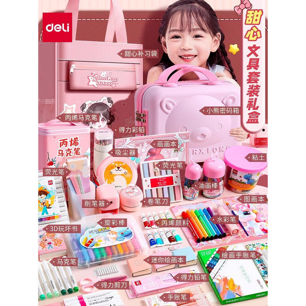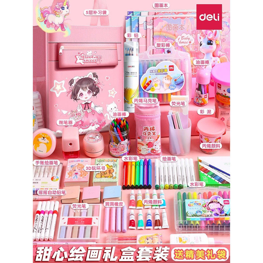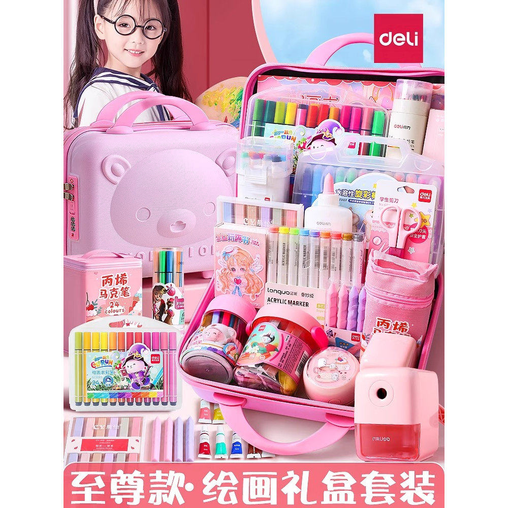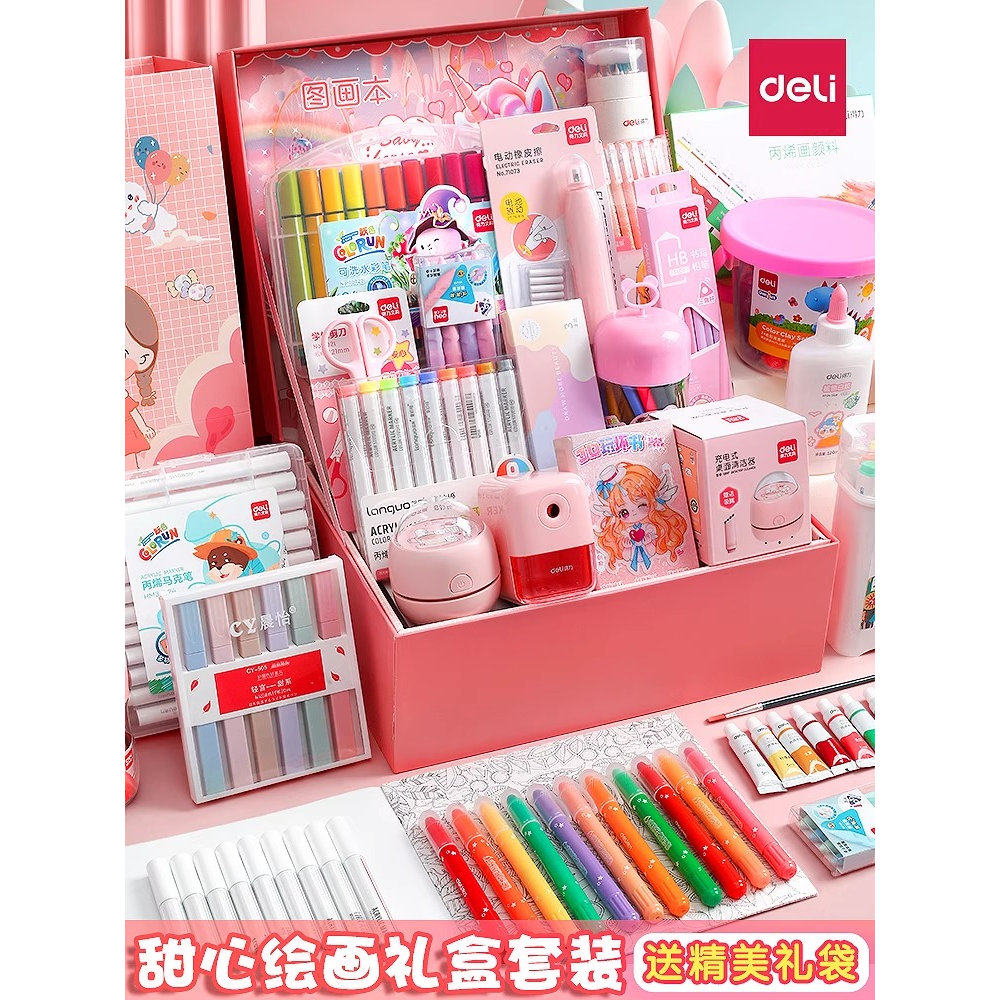 得力绘画文具套装礼盒开学礼品幼儿园奖品圣诞生日礼物伴手礼画画小学一年级大礼包水彩笔油画棒儿童学习用品