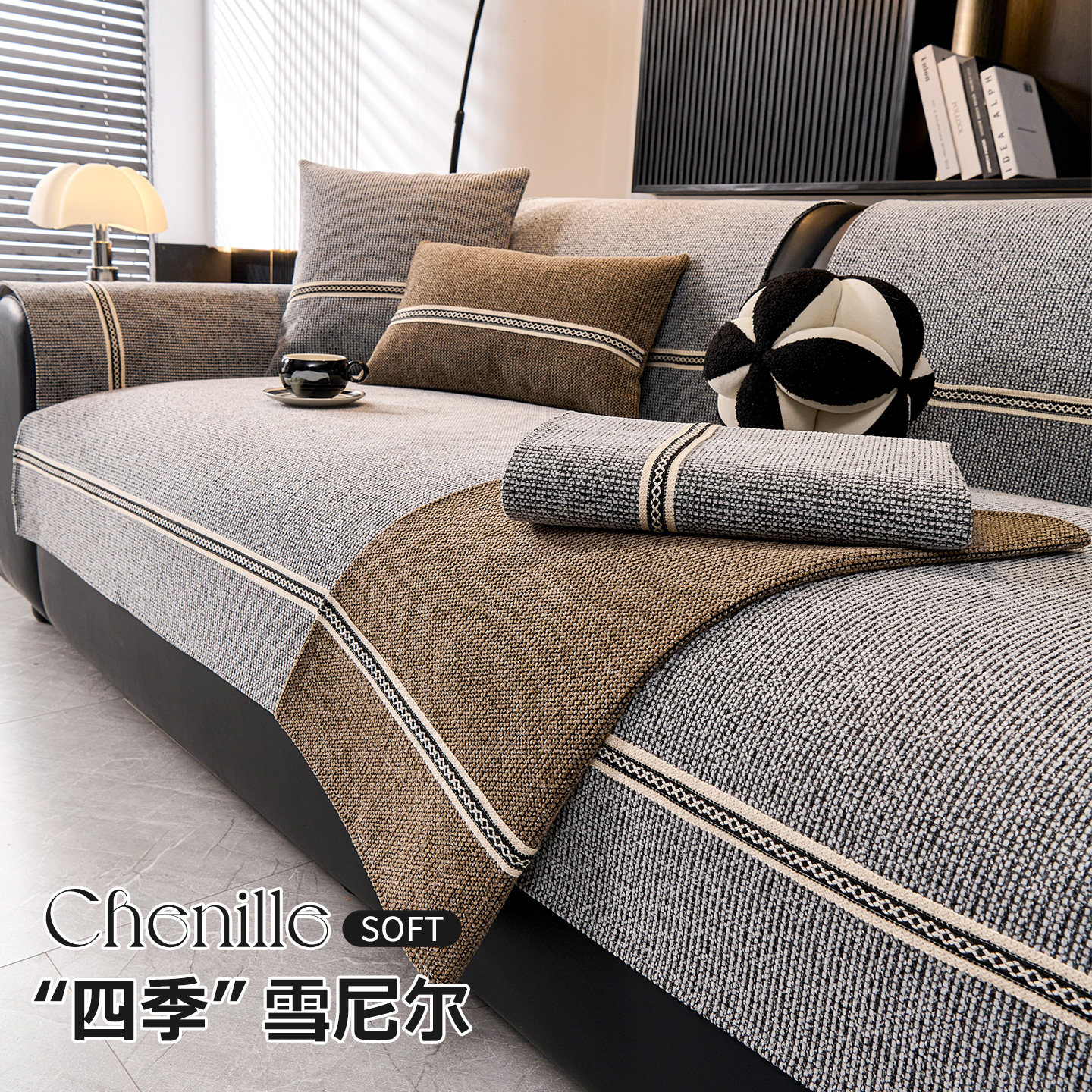 雪尼尔沙发垫四季通用可拆洗防滑防猫抓简约现代三座一贵妃沙发套