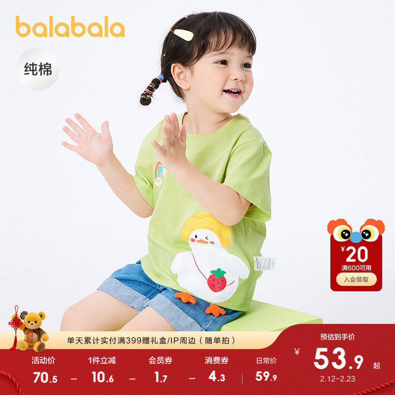 巴拉巴拉童装宝宝短袖女童T恤儿童上衣2025新款夏装纯棉打底卡通
