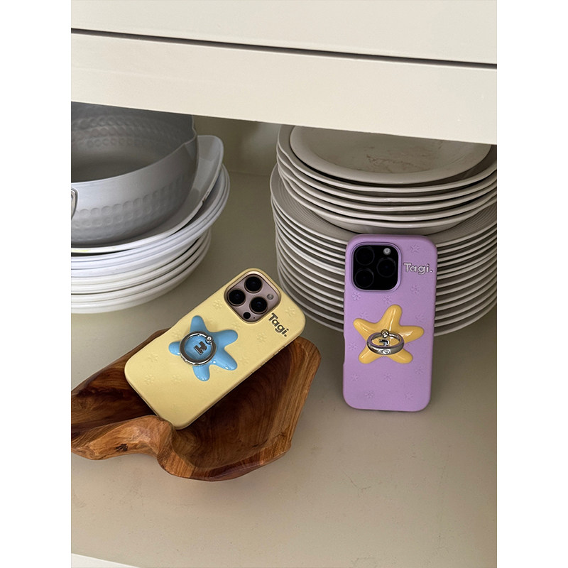 Tagi.《塔皮星》钻石戒指旋转支架皮革压纹小花海星手机壳适用于iPhone17pm/16pm