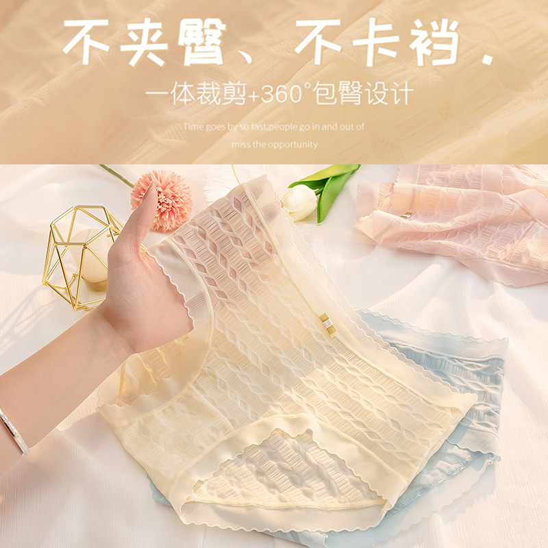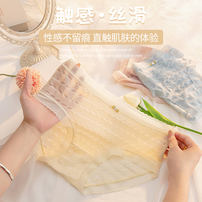 无痕内裤女士纯欲中腰透气冰丝蚕丝抑菌裆夏季薄款日系少女风短裤