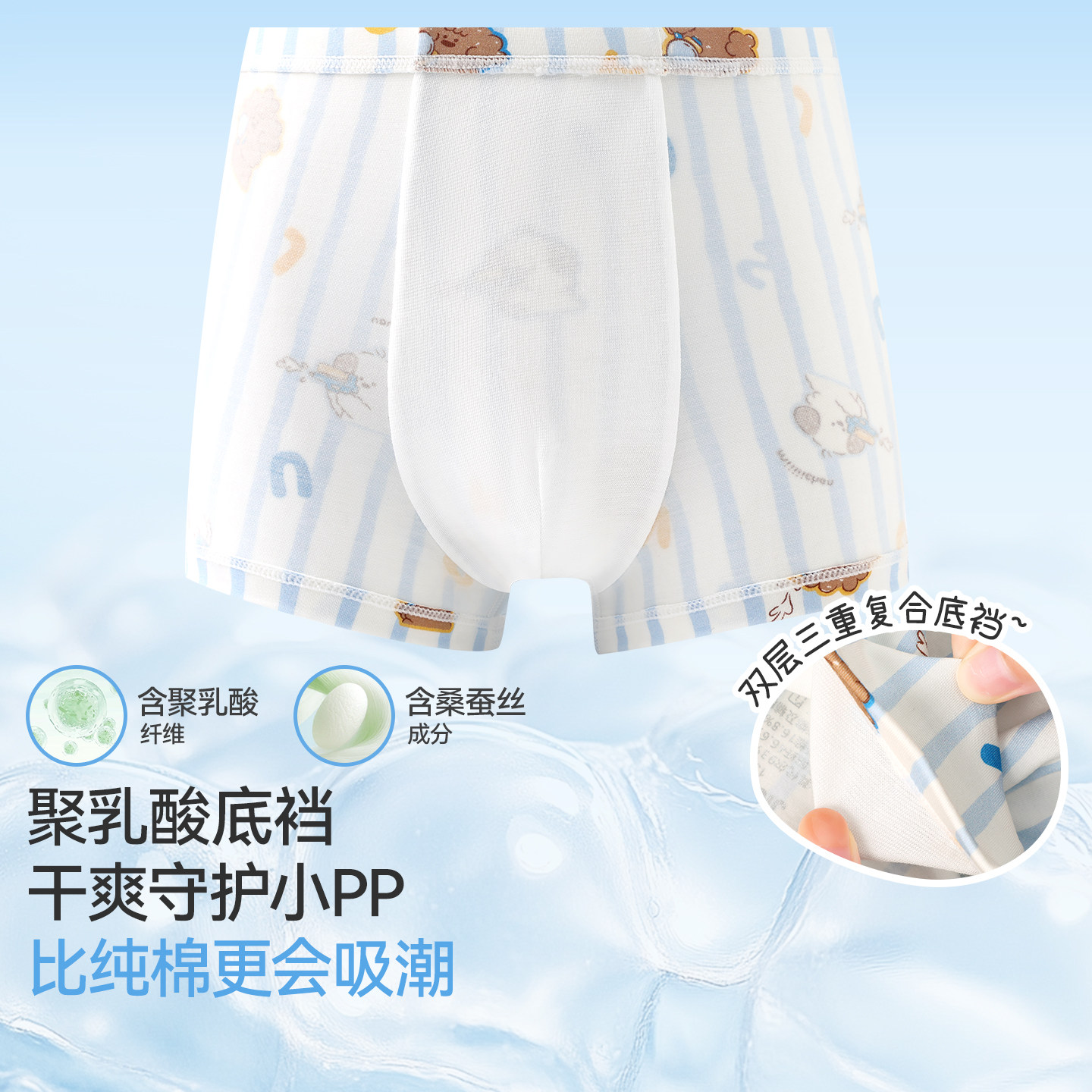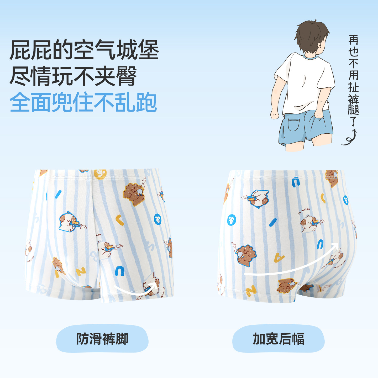 久岁伴miiiiichan联名男童内裤春夏排汗运动短裤宝宝卡通平角裤