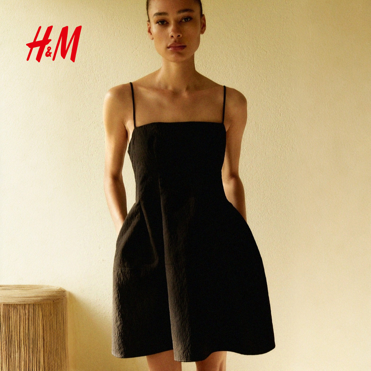 HM女装背心吊带连衣裙春季简约肌理感梭织短裙1295087