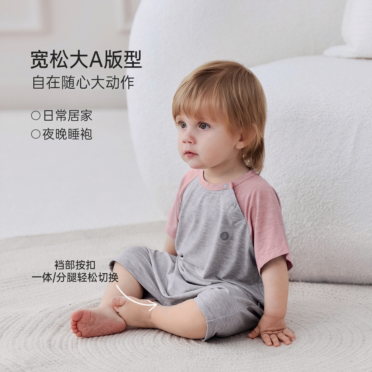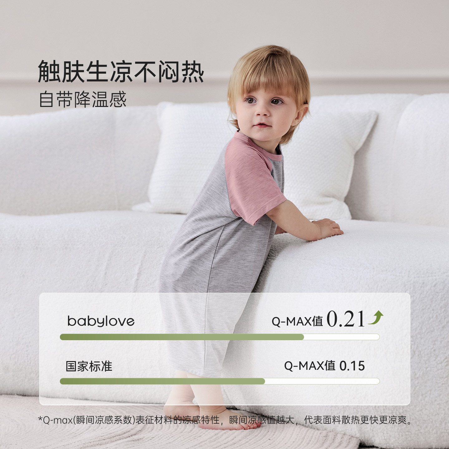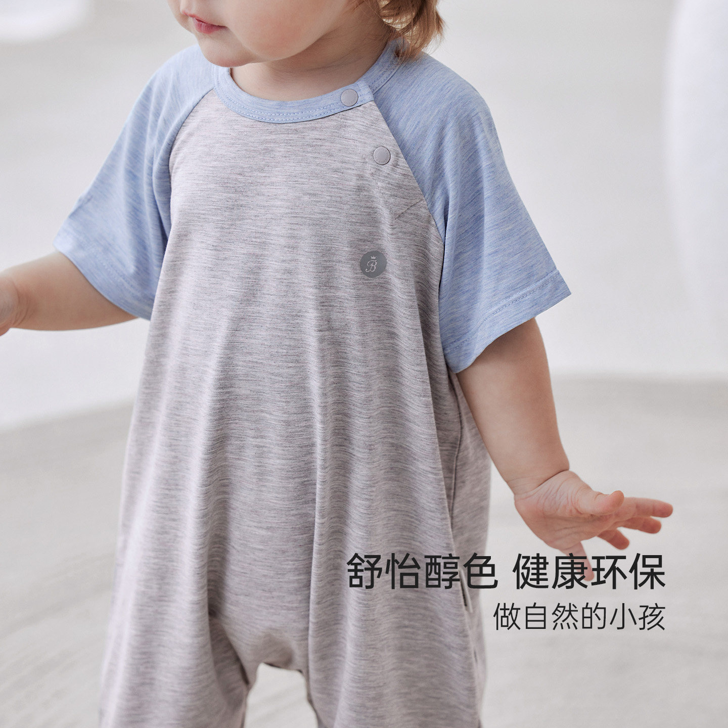 babylove婴儿连体衣夏季薄款竹丽尔短袖哈衣宝宝休闲睡衣短袖睡袍