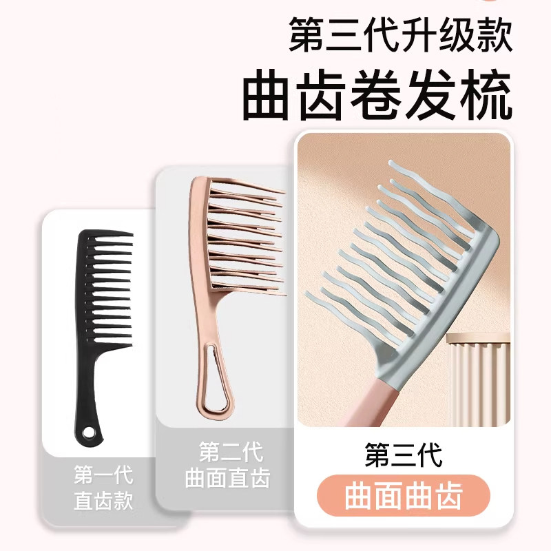 多巴胺双排波浪齿卷发专用宽齿梳防卷发变直发厚实塑料美发梳子
