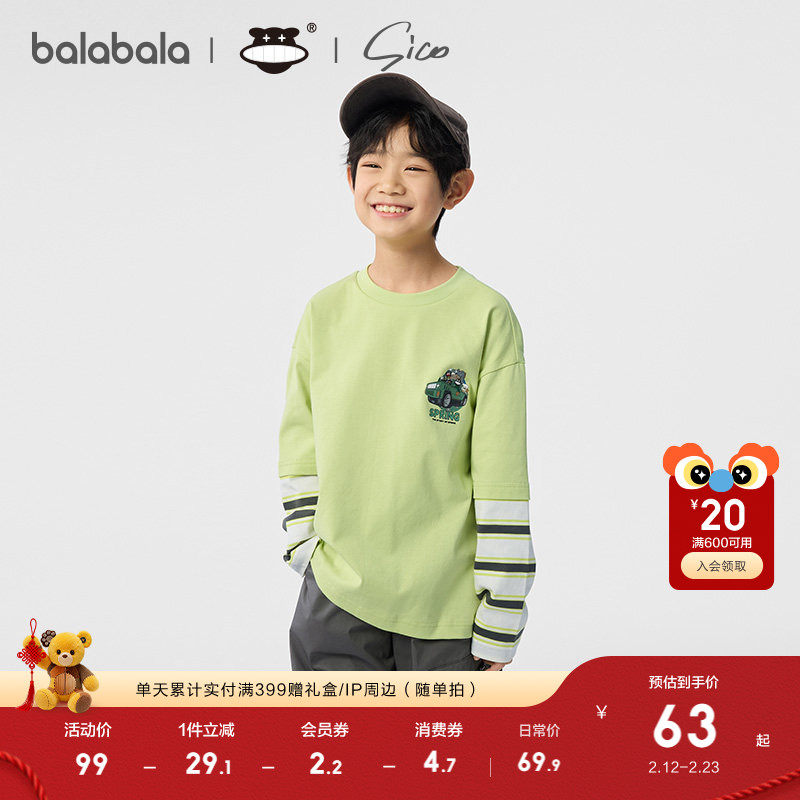 【设计师SICO联名】巴拉巴拉童装男童t恤儿童春季假两件上衣时尚