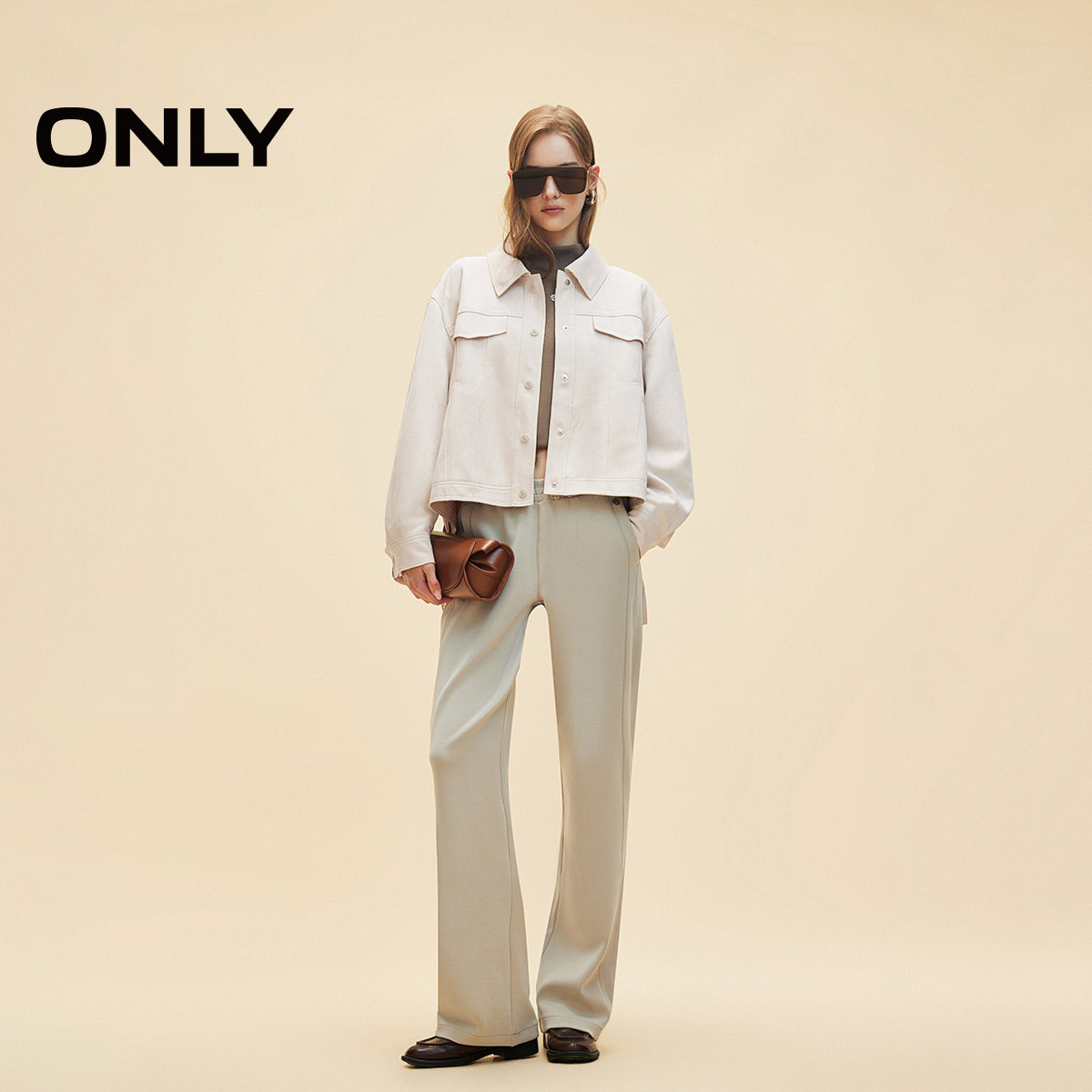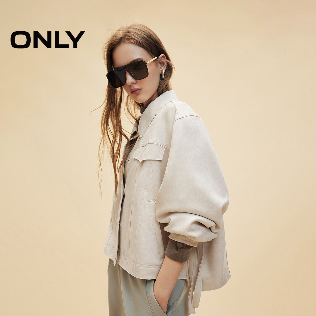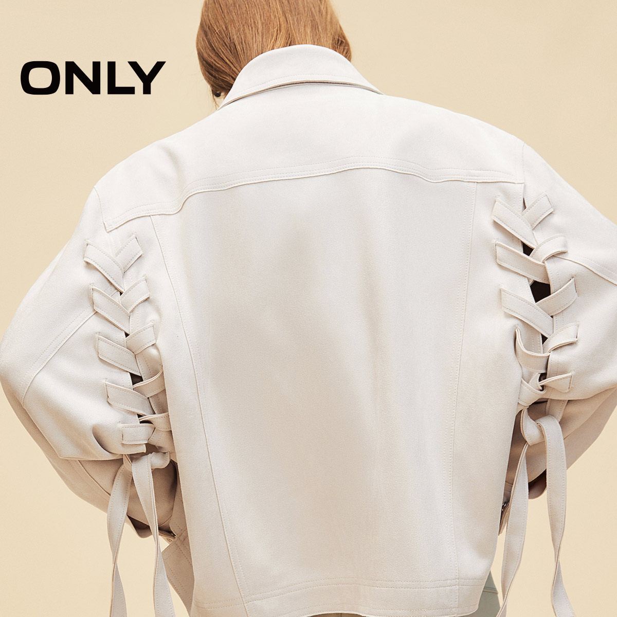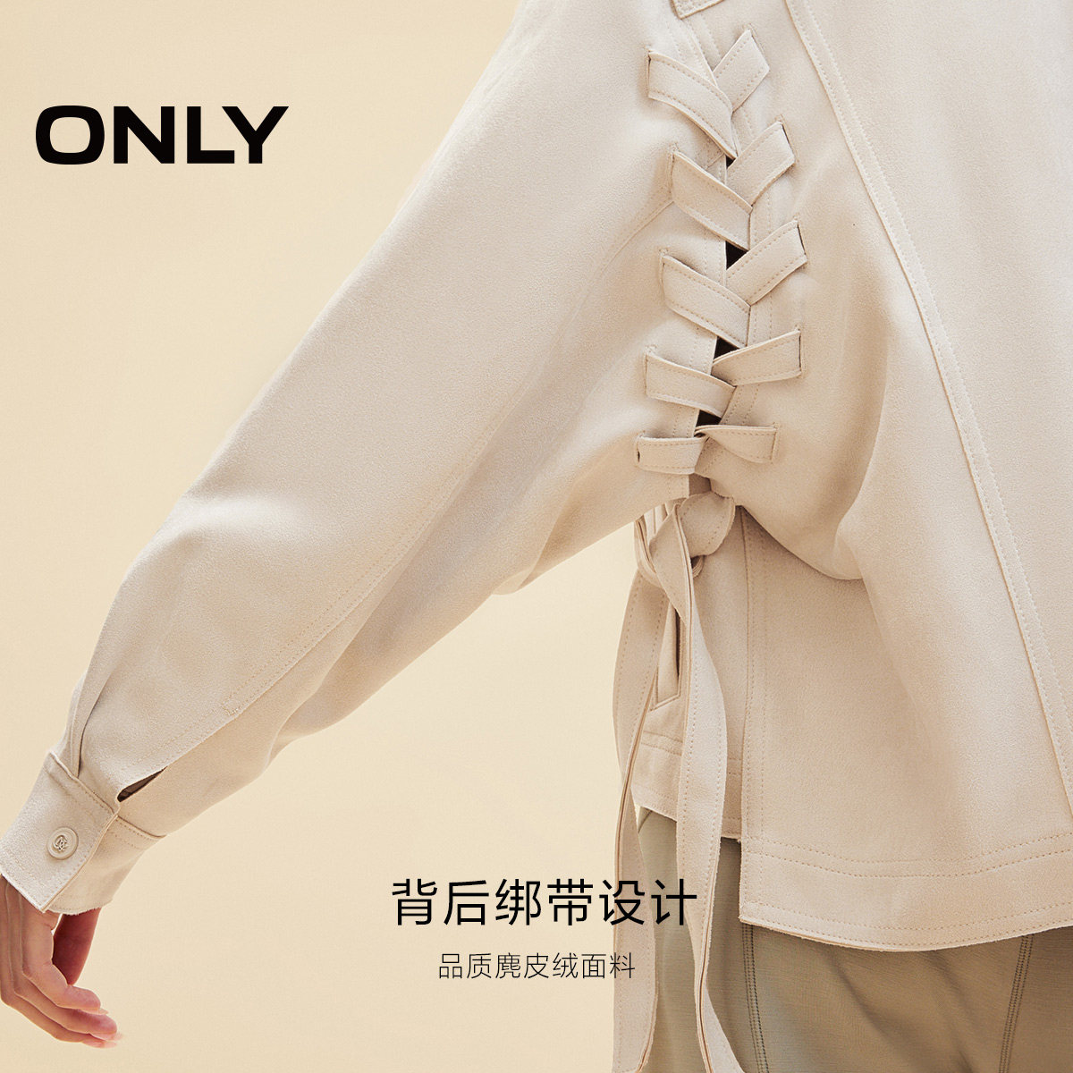 ONLY秋季设计感绑带宽松落肩翻领麂皮绒外套女|124336035