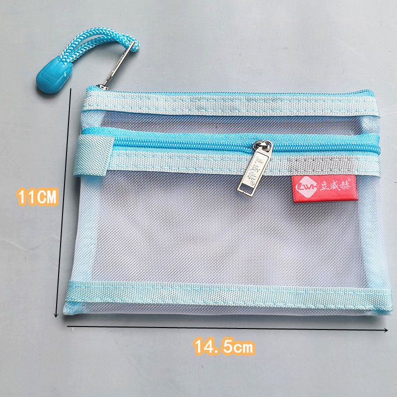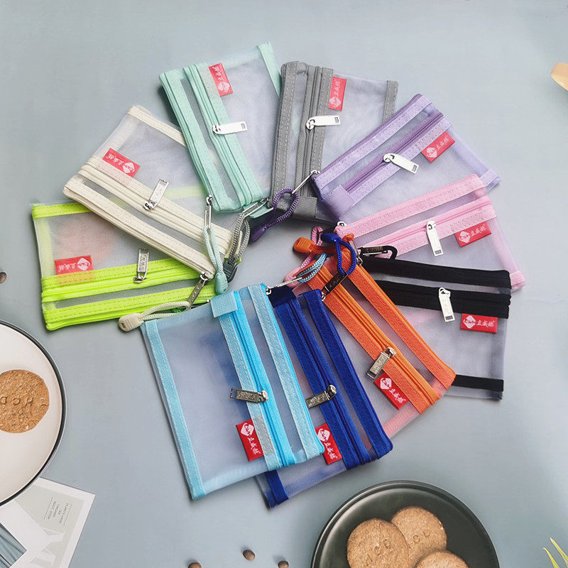 双层尼龙透明迷你证件袋网格零钱袋ins风钥匙扣门禁卡小件物品收纳袋随身携带卡片小容量拉链袋银行卡驾驶证