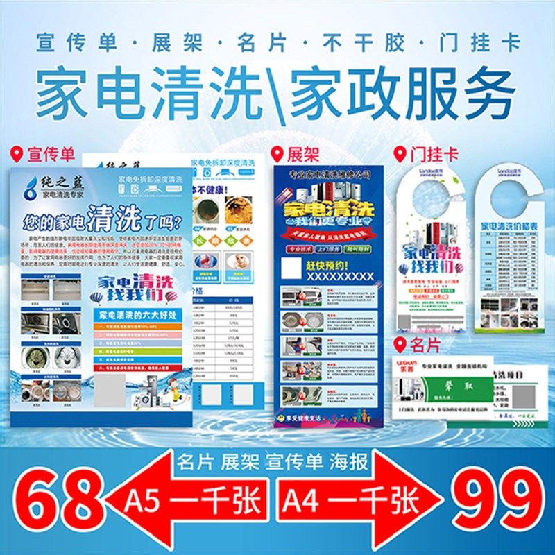 家电清洗保洁宣传单定制家政服务彩页传单印刷海报订制贴纸设计双