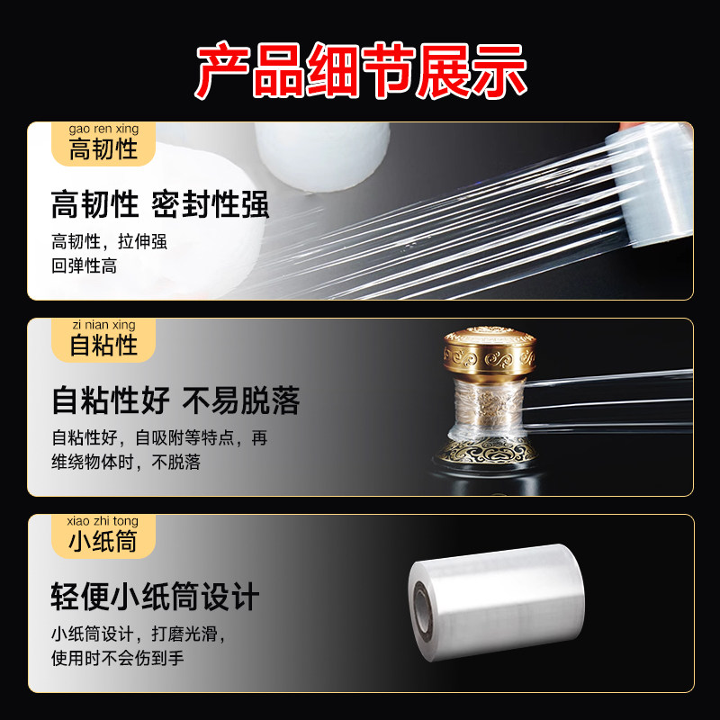 酒瓶封口膜酒坛老酒防洒渗漏老化挥发食品级拉伸外卖打包缠绕膜
