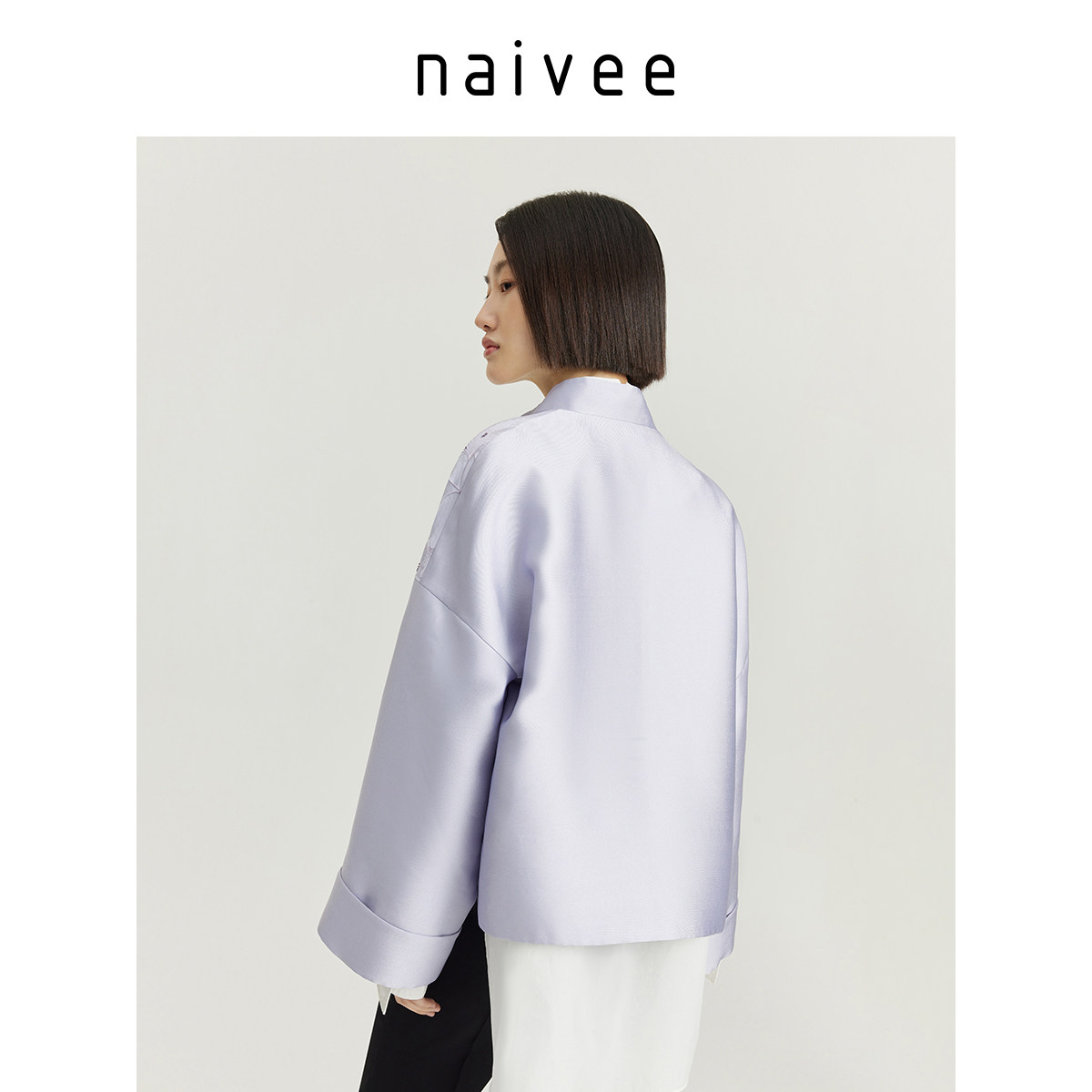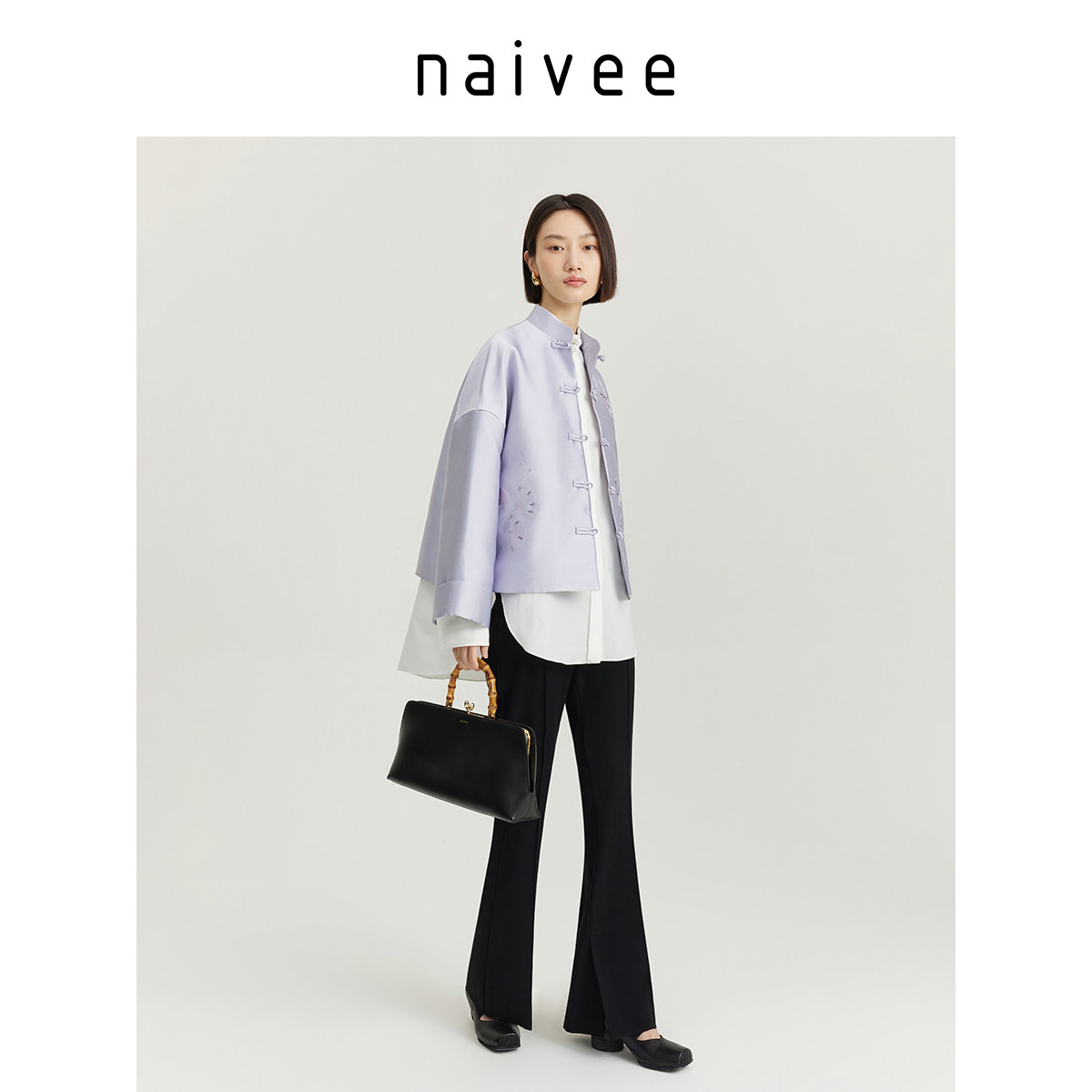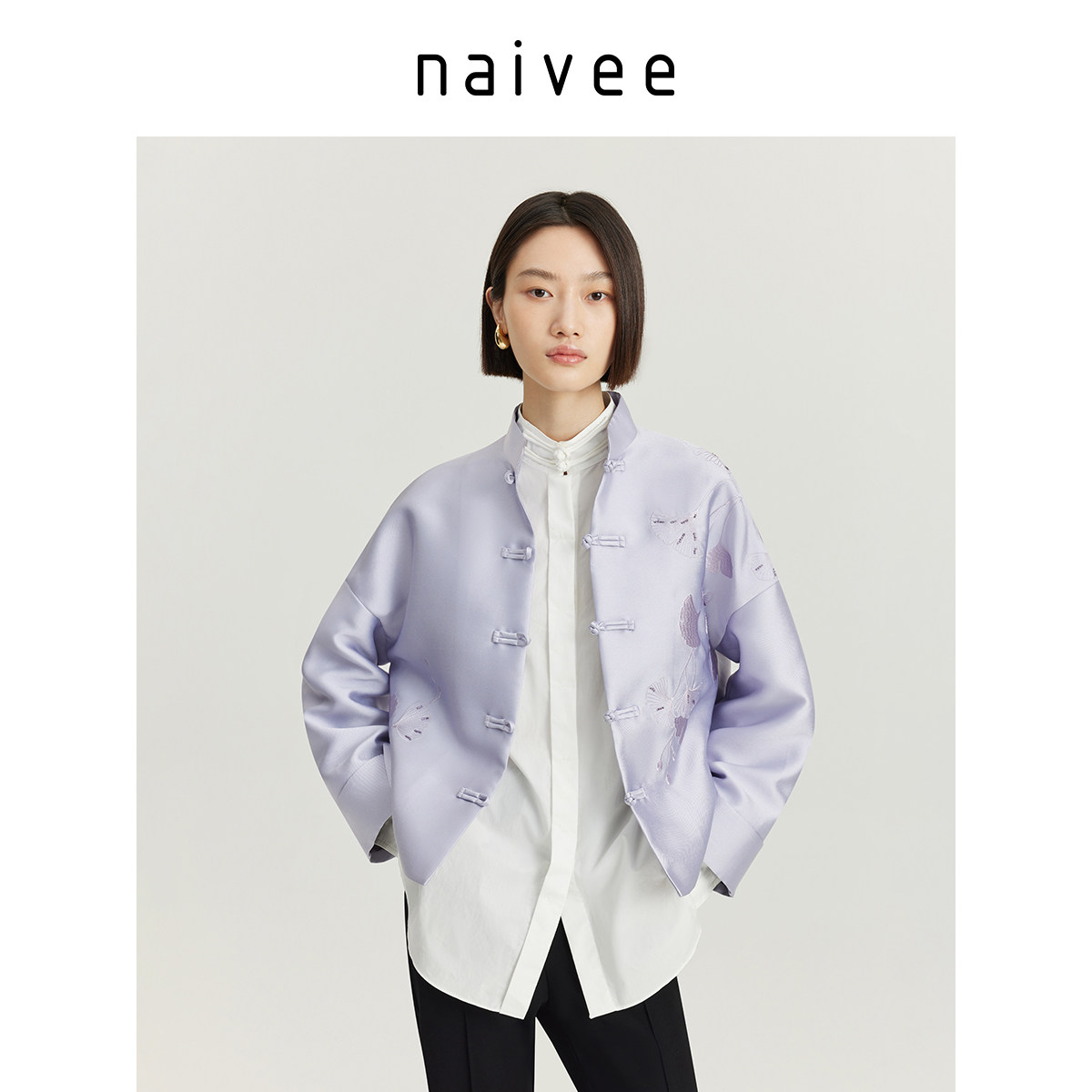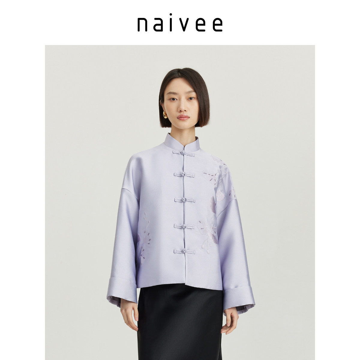 纳薇秋款新中式女装钉珠刺绣立领国风上衣盘扣翻袖改良外套女