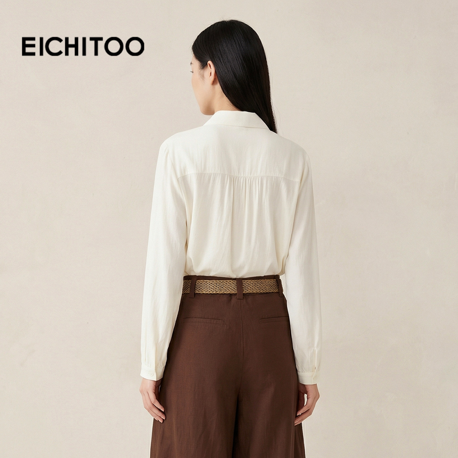 【100%棉】Eland衣恋衬衫女单排扣宽松通勤长袖上衣2025冬季新款