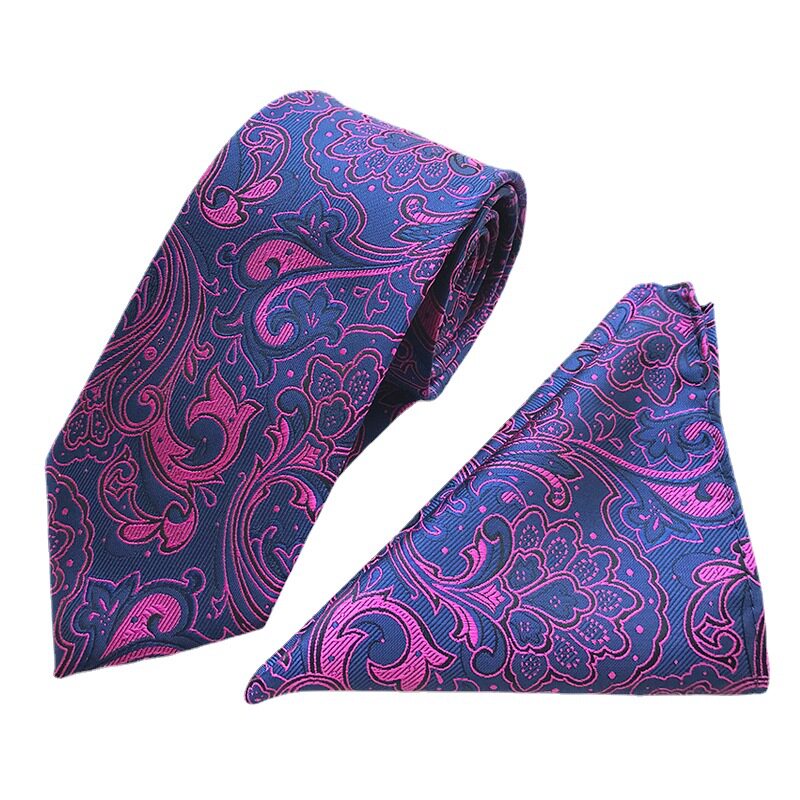 厂家现货供应涤纶大腰花格子条纹男士领带男士口袋巾两件套