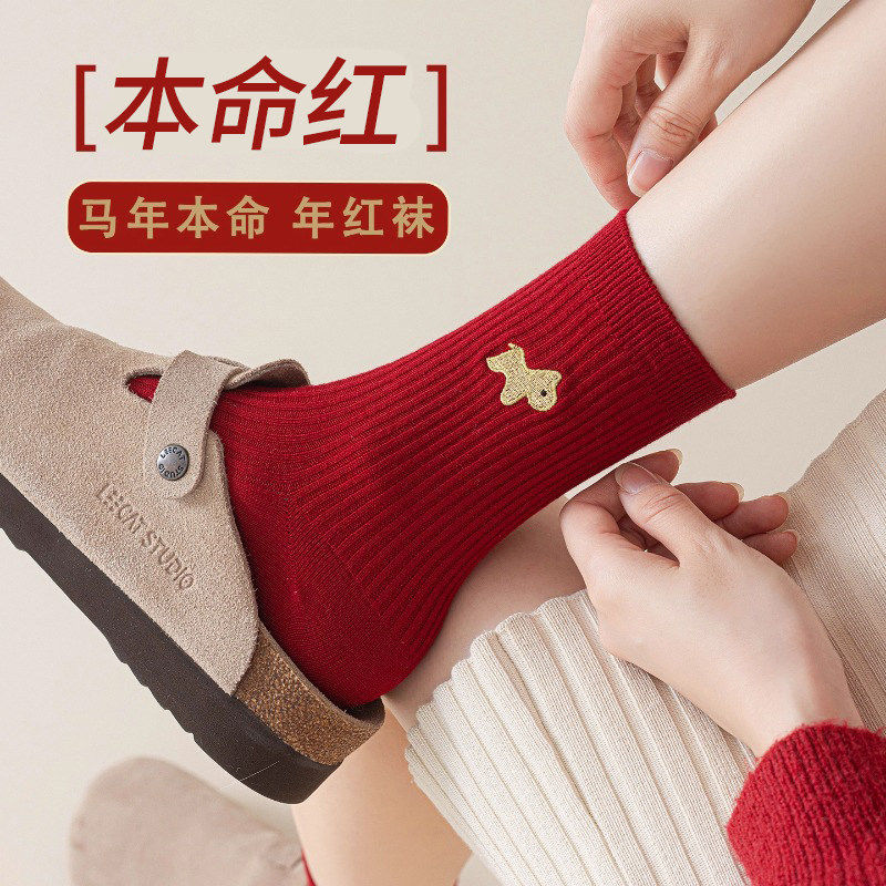 2026马年本命年红袜子女款秋冬季防臭中筒袜新年情侣一对结婚长袜