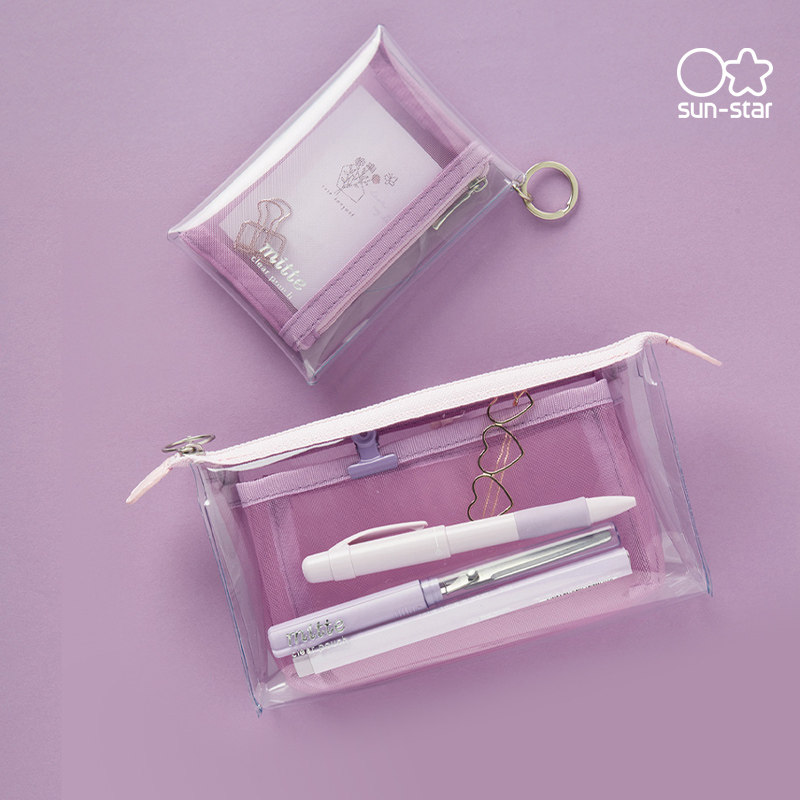 sunstar太阳星文具旗舰店高颜值ins风迷你小挂包mitte系列彩色收纳包纤薄便携透明化妆包多口袋分类学生笔袋