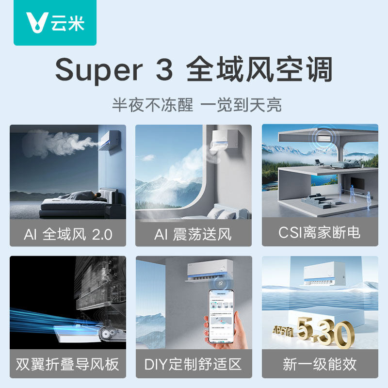 云米智能空调1.5匹2匹全域风super3新一级能效变频冷暖两用挂机