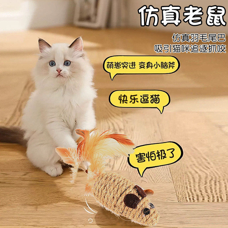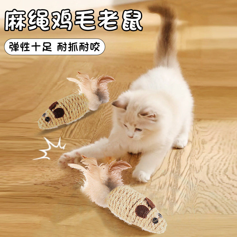 哈宠乐猫玩具麻绳鸡毛老鼠猫咪自嗨解闷神器猫咪消耗体力猫咪玩具