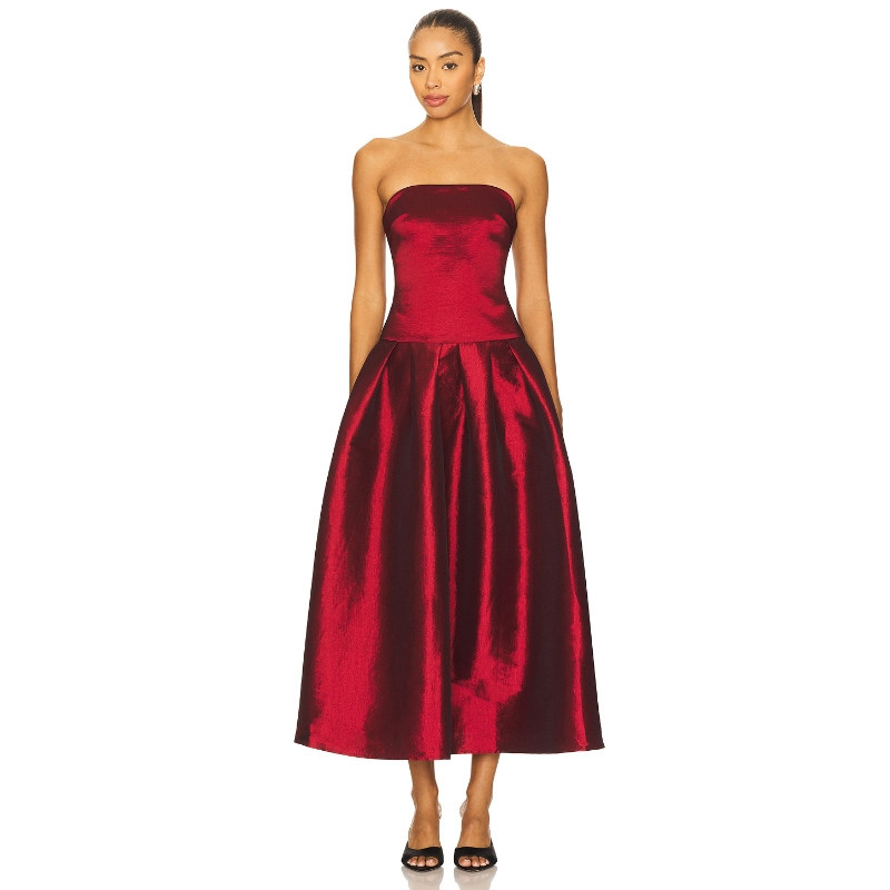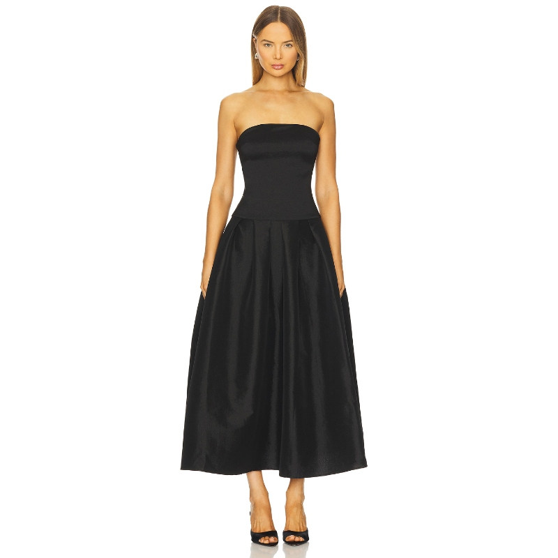 MORE TO COME 缎面质感连衣裙浅蓝收腰抹胸长裙现代感REVOLVE新款