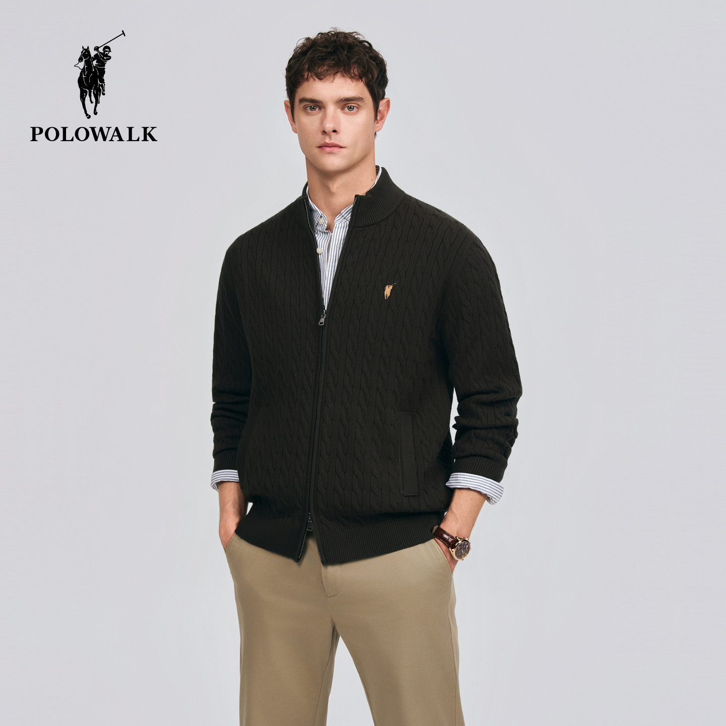 POLOWALK男式针织衫2026春季新品百搭显瘦绞花半高领男装针织开衫