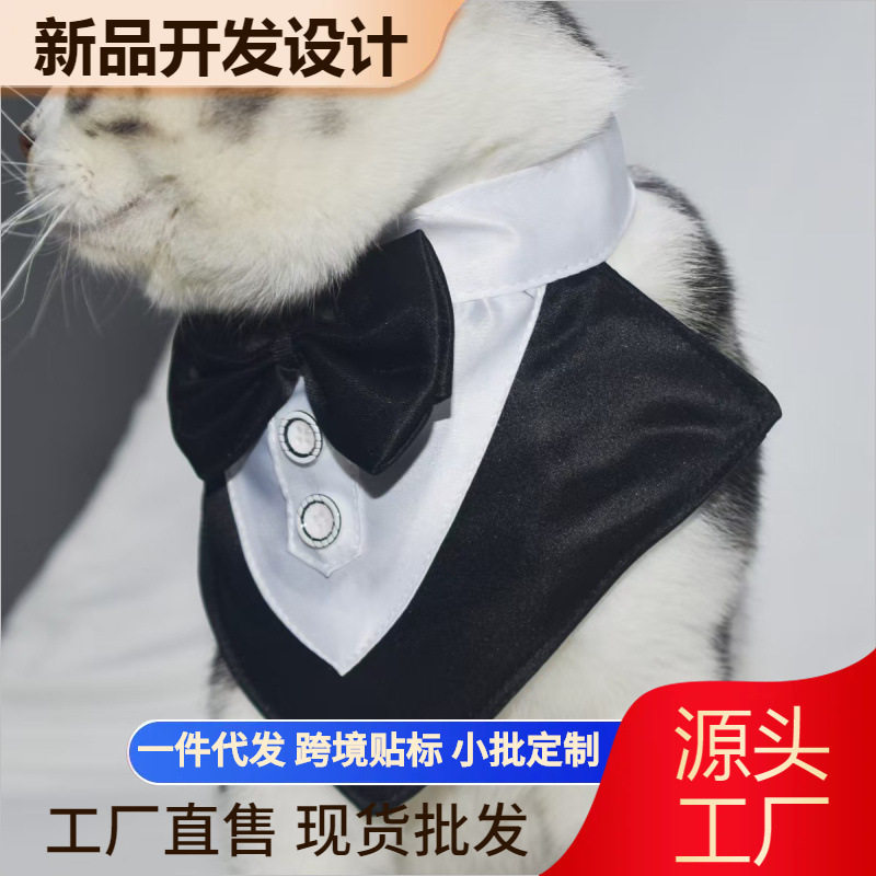 新款婚宴西装宠物口水巾狗项圈宠物三角巾宠物领结婚礼西装三角巾