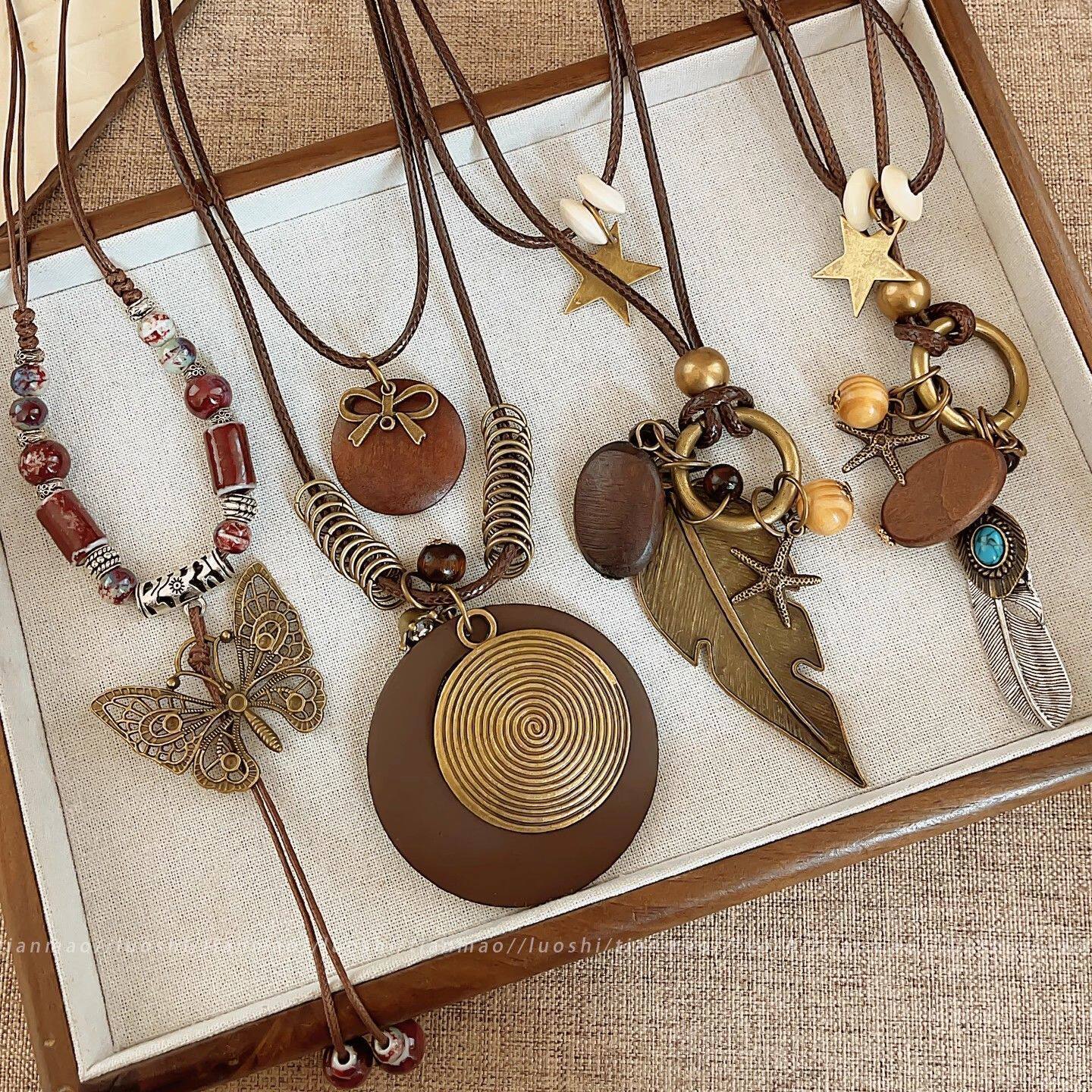 美拉德波西米亚叠戴毛衣项链女棕色复古穿搭choker锁骨链高级配饰