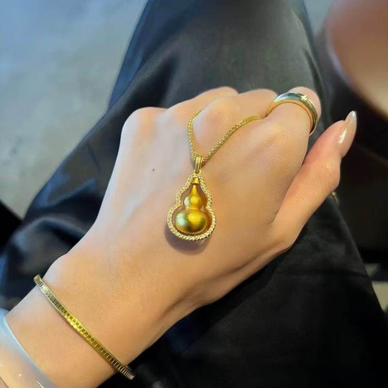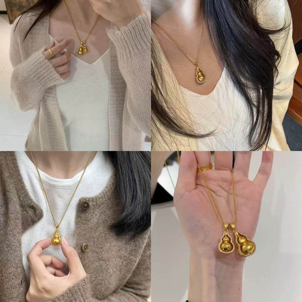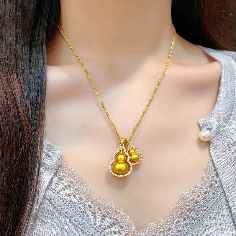新中式金店同款古法传承沙金镶钻葫芦吊坠项链女时来运转锁骨链