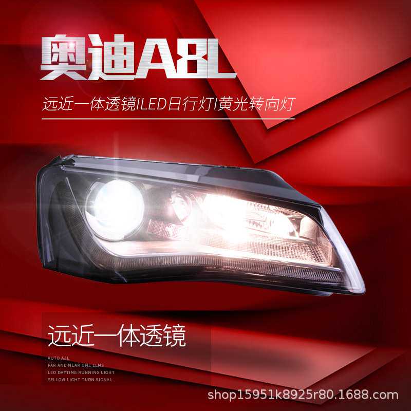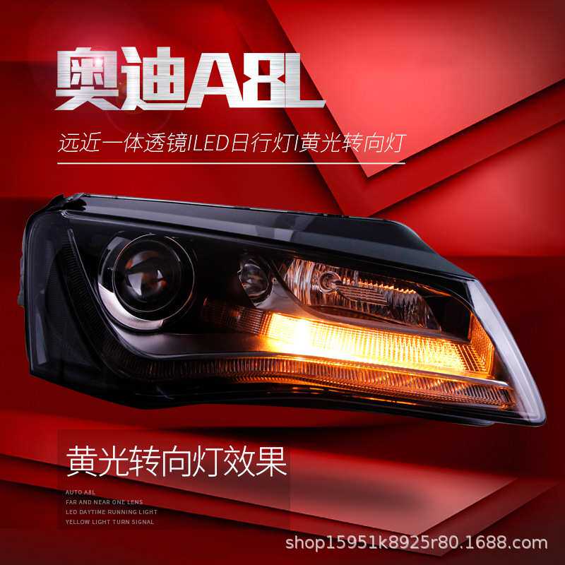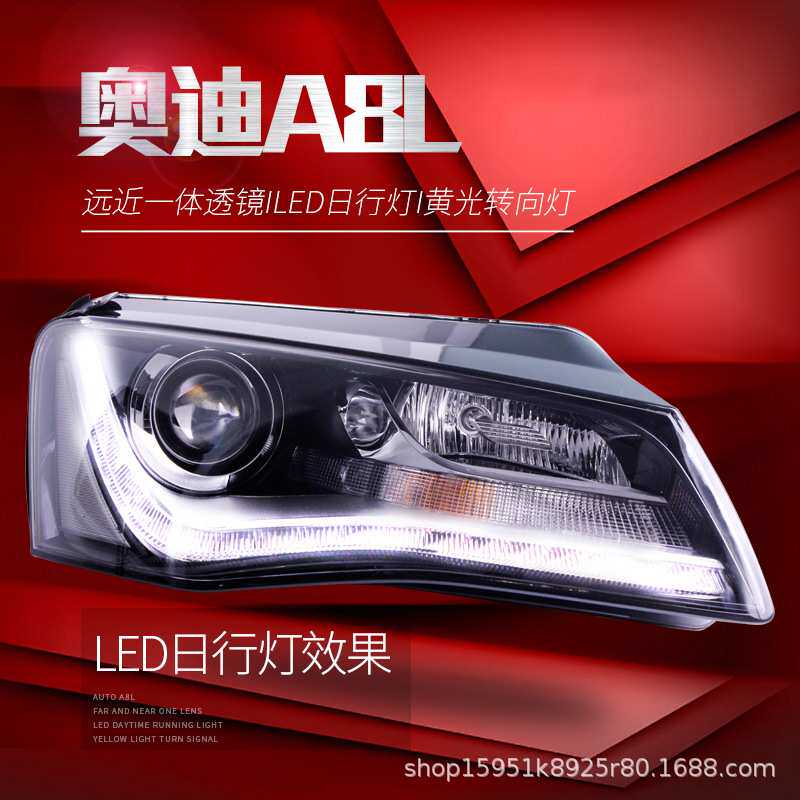 适用于11-13款奥迪A8L大灯总成改装LED日行灯双光透镜原厂氙气灯