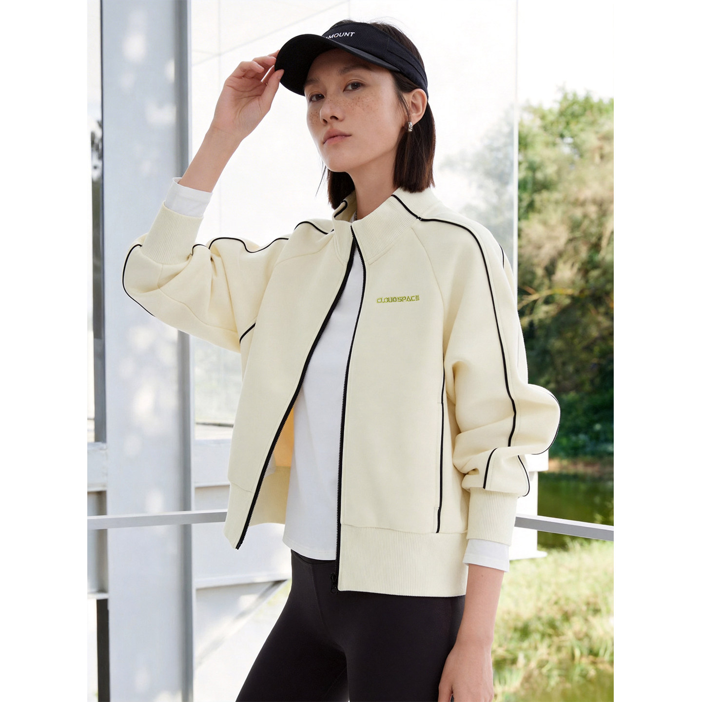 云上生活【空气柔外套】撞色字母刺绣立领短款长袖春装拉链开衫女