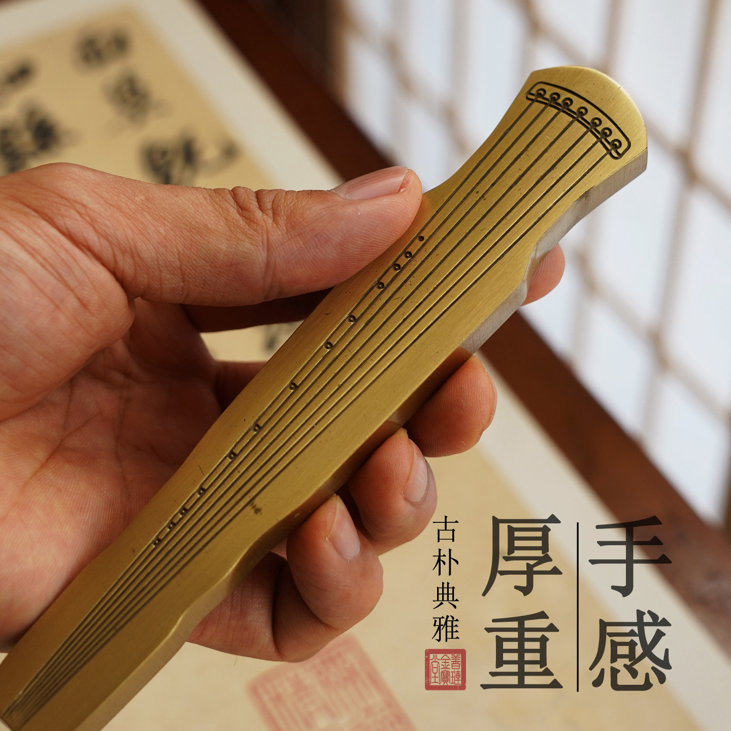 镇纸黄铜书法专用古琴镇尺加重金属手工创意国画压纸毛笔笔搁全铜