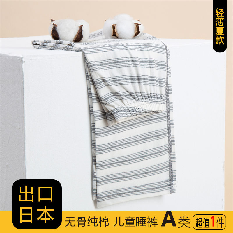 日系出口纯棉a类男童九分裤夏季薄款长裤中大童家居裤小男孩睡裤